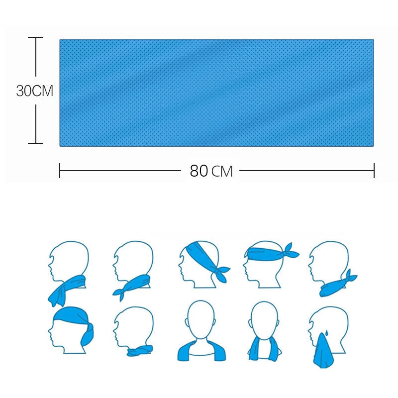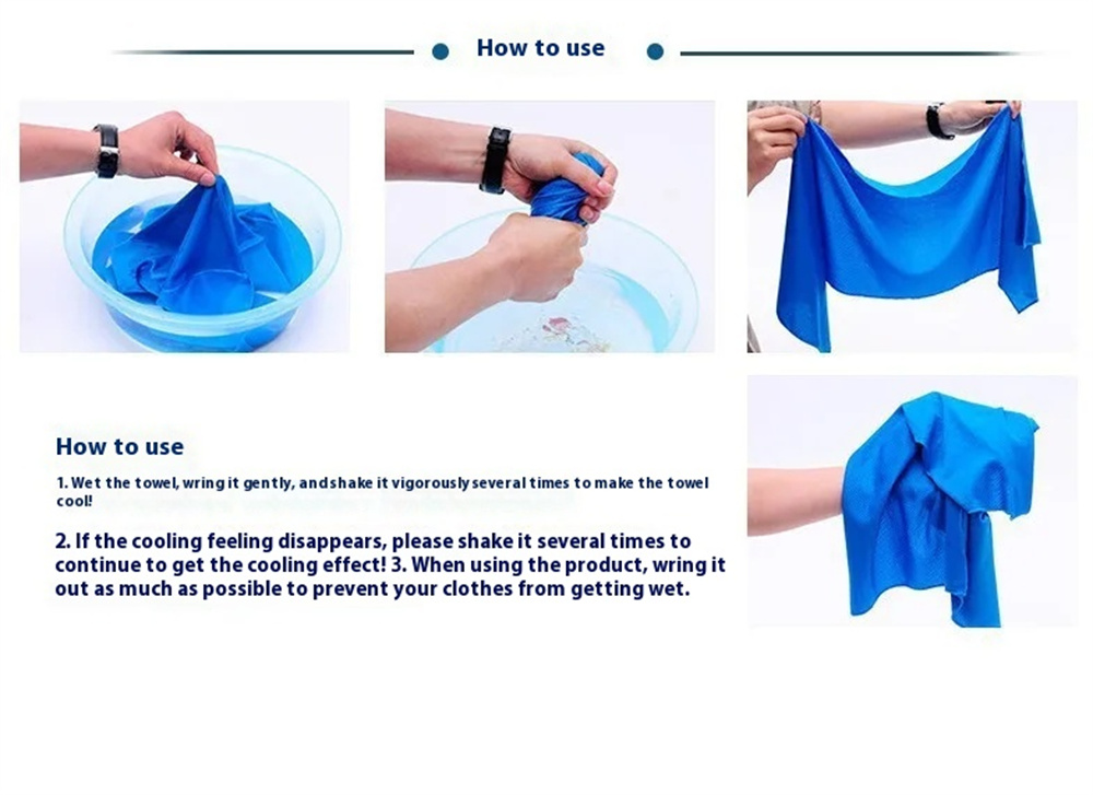 1. Safe & Eco-Friendly: The cooling towel is made of super ice hyper-evaporative breathable material. Working on the physical evaporation of moisture. No chemicals are used in the making of the cooling towels, free from any chemical additives and smell.