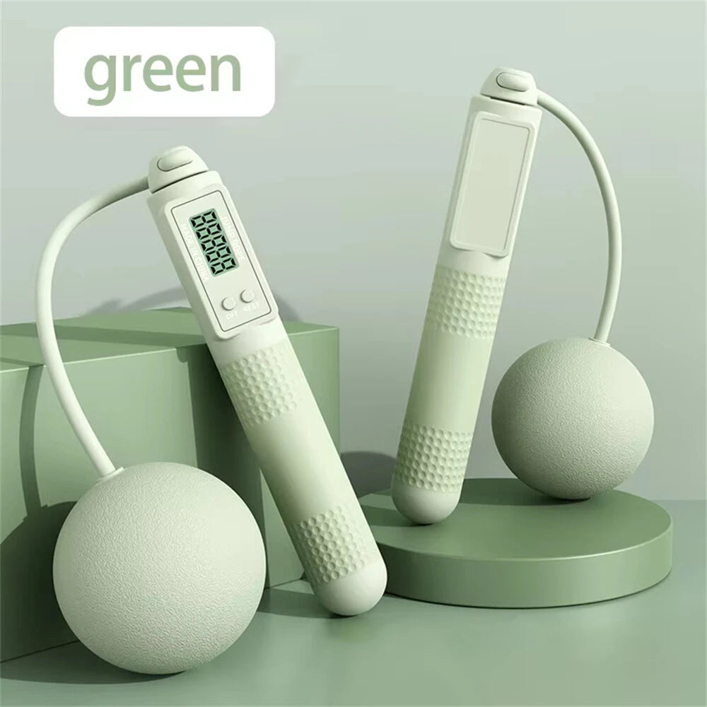 Features:1.  Heavy ball rope: it is cordless and can jump from place to place at any time without picking any place.  The heavy ball makes the arm swing harder and burns fat more efficiently.2.  Fitness Jump Rope with Counter: after the button is turned on, the rope skipping does not need to be counted manually.  With the number of turns of the rope, accurate counting is performed to record the rope-skipping results.3.  Anti-slip silicone handle:The swing is more convenient, firm, and anti-slip, the rope length can be adjusted, and the length can be adjusted according to personal application needs.4.  Whole body exercise: practice arms, shake off worship meat, tighten waistline, practice waistcoat line, thin thighs and hips, shape slender legs and shape peach hips.  Eliminate calf muscle and thin calf.5.  Convenient use: It can be used indoors and outdoors, is suitable for leisure and recreation, exercise and fitness, improves body metabolism, and accelerates fat consumption.Package included1 x Jump Rope Note:Due to the different monitor and light effects, the actual color of the item might be slightly different from the color showed on the pictures.  Thank you!Please allow 1-2cm measuring deviation due to manual measurement.