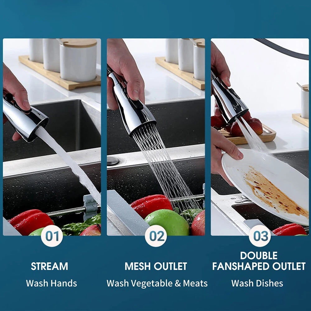 Designed with a 360° rotating , this faucet head can reach every corner of your kitchen or bathroom sink. This feature ensures thorough cleaning of dishes, pots, and even the sink itself, providing full coverage and eliminating hard-to-reach areas.