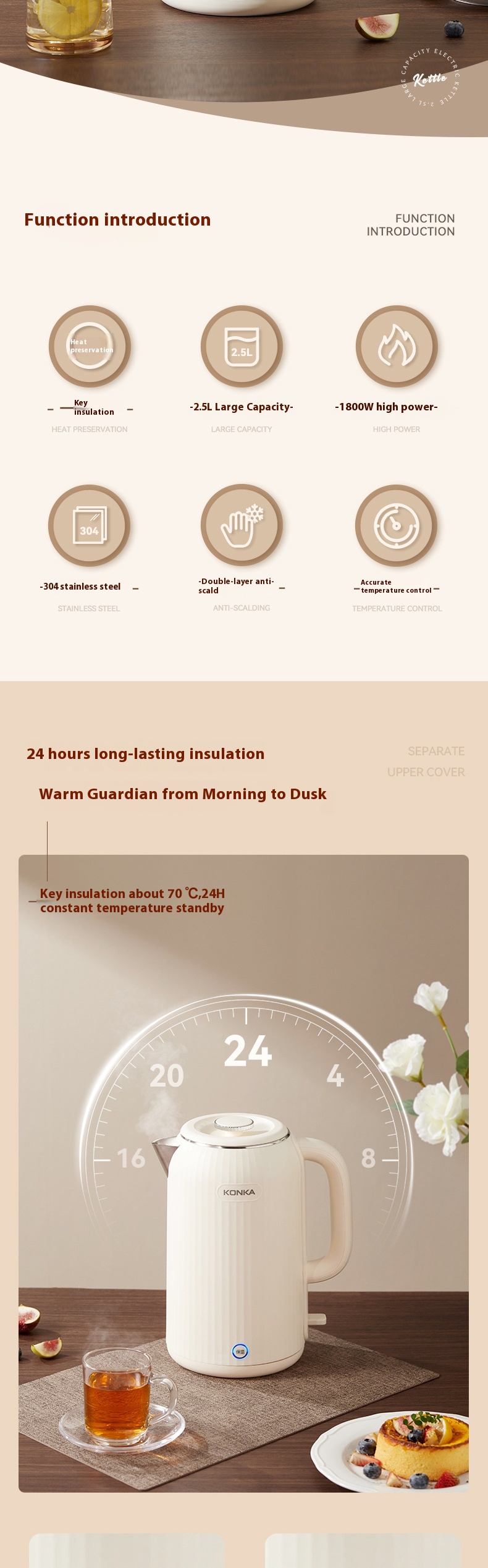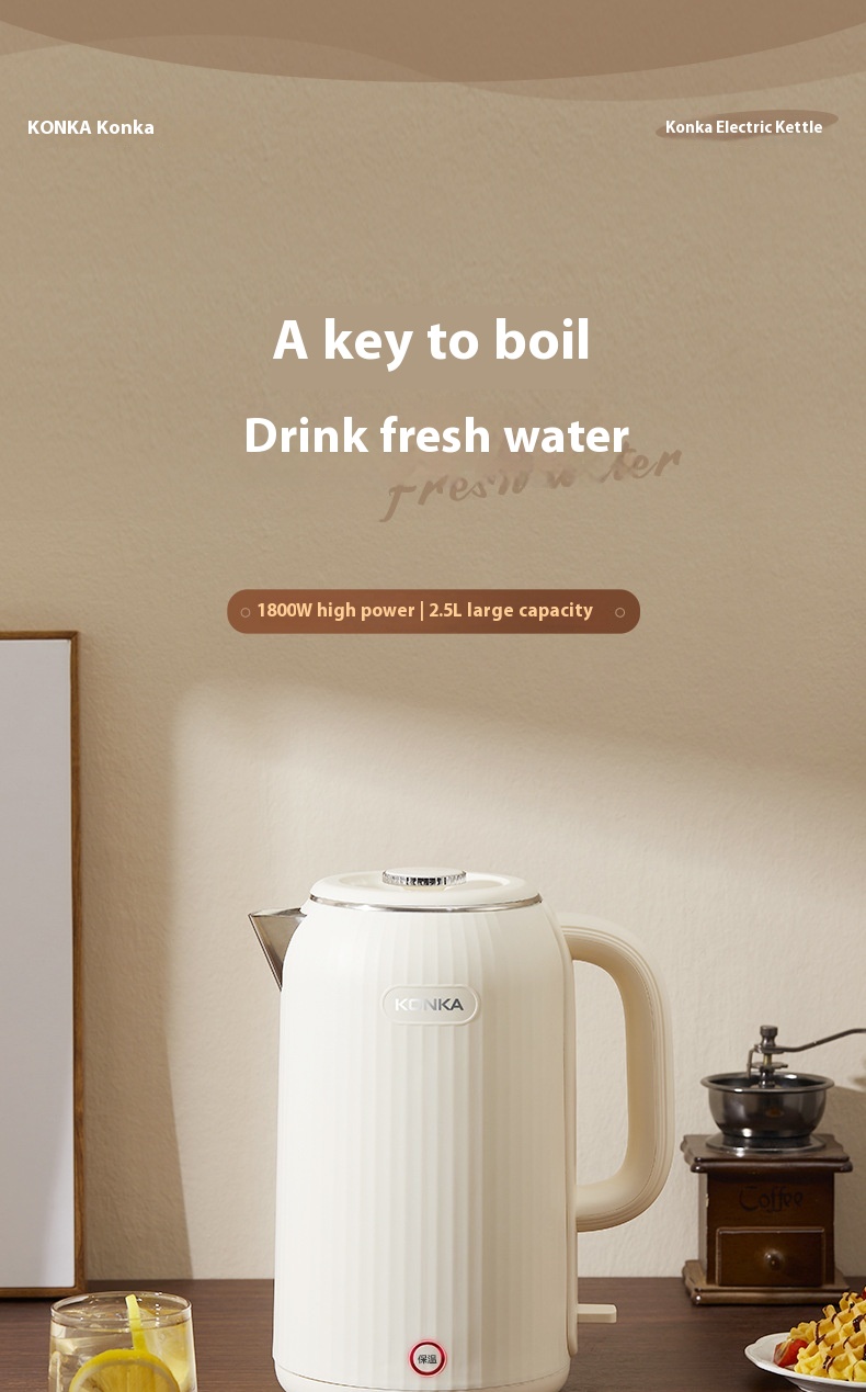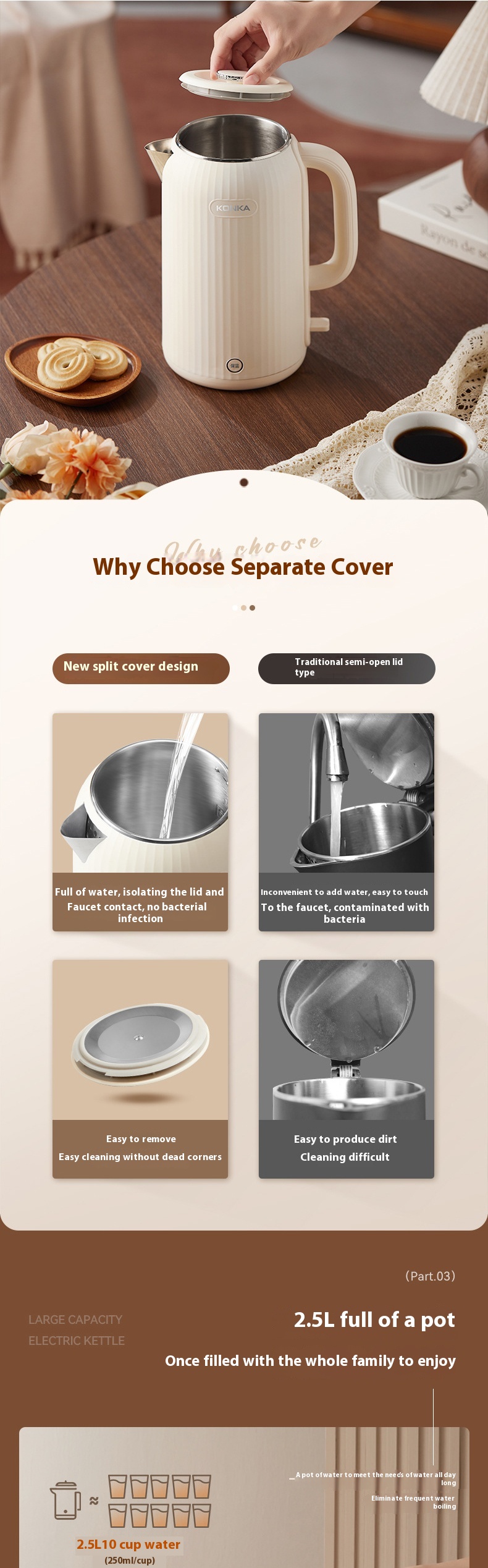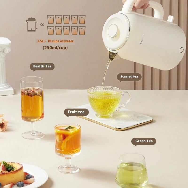 - Generous Capacity: Featuring a 2.5L capacity, this kettle minimizes the need for frequent refills. Perfect for families, it easily meets the hot water demands of multiple users, ensuring everyone enjoys their beverages promptly.