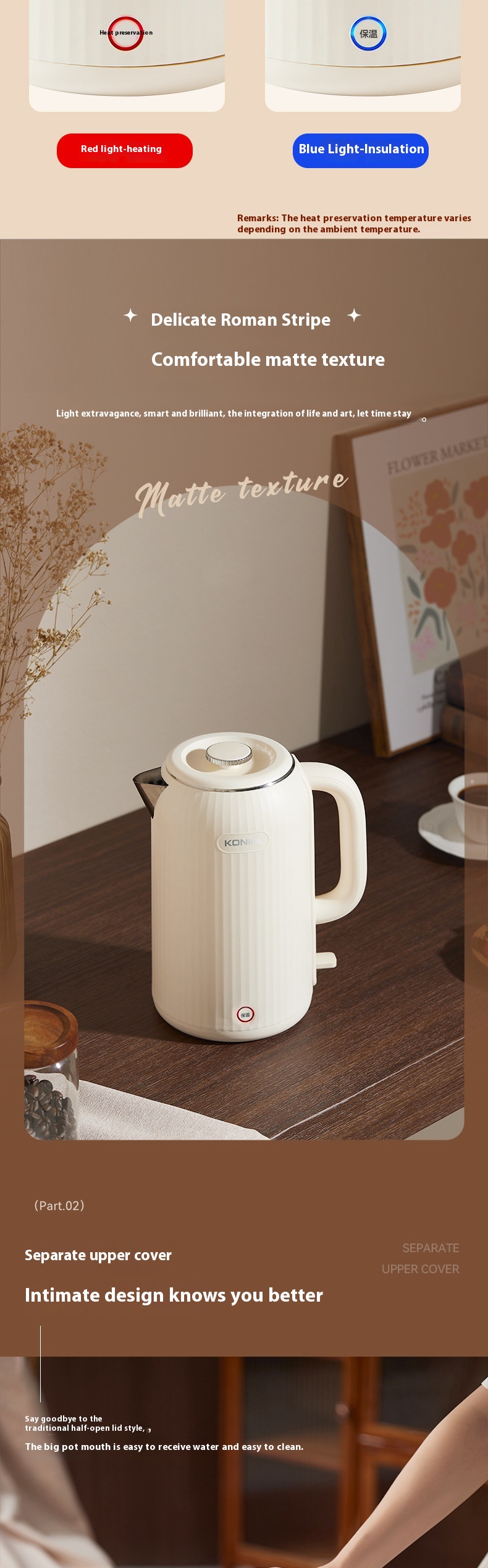 - Elegant Design: The kettle sports an exquisite Roman stripe pattern with a frosted finish, blending simplicity and luxury in its appearance. It enhances any kitchen decor while being a functional appliance.