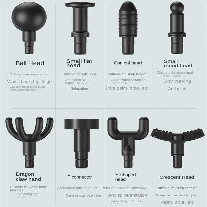 - Eight Interchangeable Heads: Equipped with 8 different massage heads, this fascia gun is designed to target specific areas of your body effectively. Each head offers a unique functionality, from general muscle relaxation to precise deep tissue treatment, ensuring comprehensive muscle care.