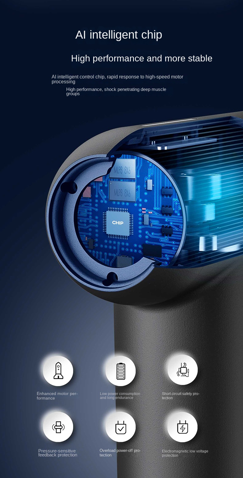 - Advanced Smart Chip: Equipped with an intelligent control chip that maintains consistent speed and power. This advanced technology ensures that the massage gun operates efficiently and provides a seamless massage experience under various conditions.