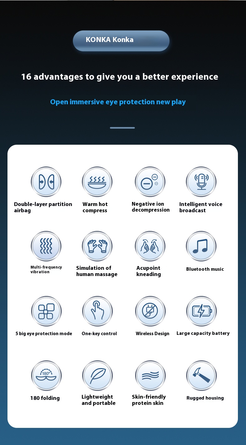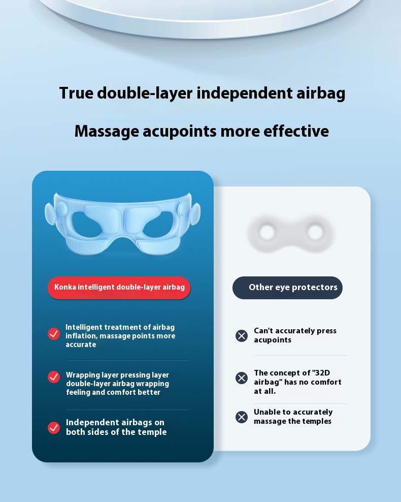 - Dual-layer Air Pressure Technology: This device employs advanced dual-layer airbag massage technology to provide precise acupressure to the eye area, ensuring a thorough relaxation experience. Suitable for various face shapes.