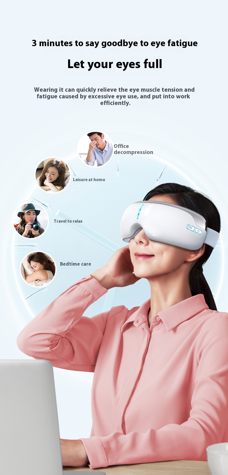 - 42°C Consistent Heat Therapy: Built-in warm sensors maintain a consistent 42°C temperature, promoting blood circulation around the eyes. This not only soothes the muscles but also helps to reduce puffiness and dark circles.