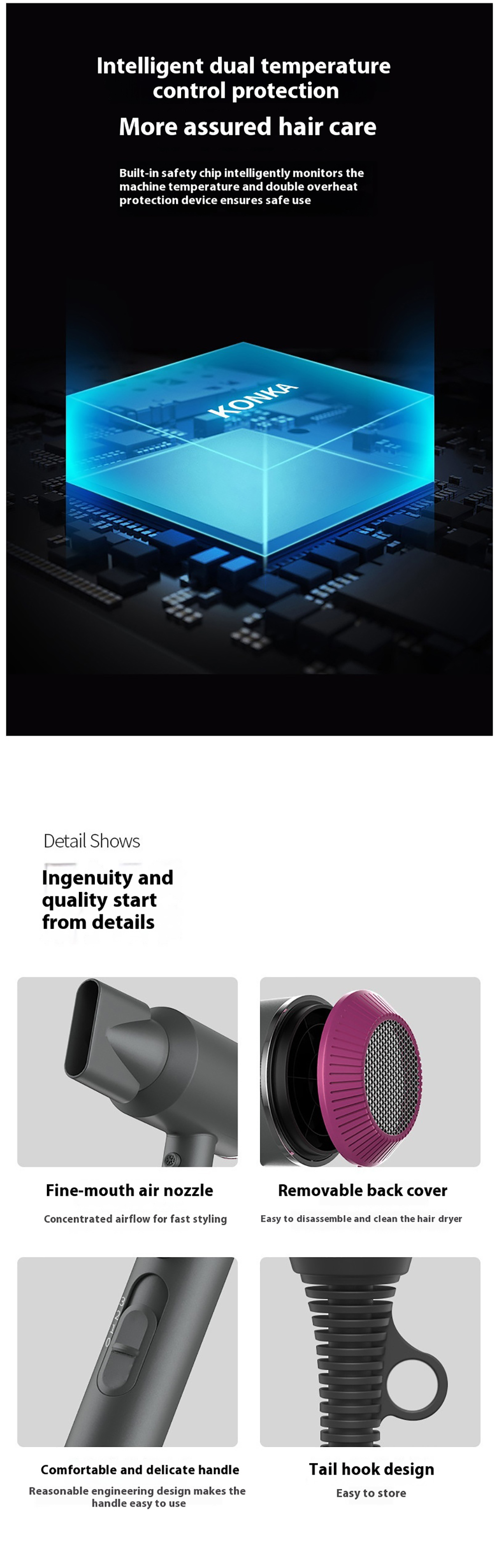 The easily removable back cover facilitates straightforward cleaning and maintenance, prolonging the lifespan and efficiency of your blow dryer.