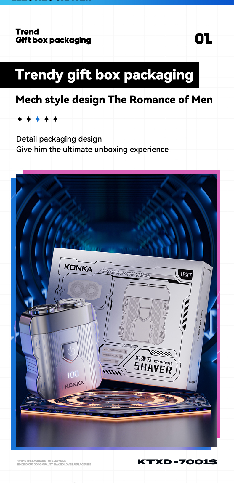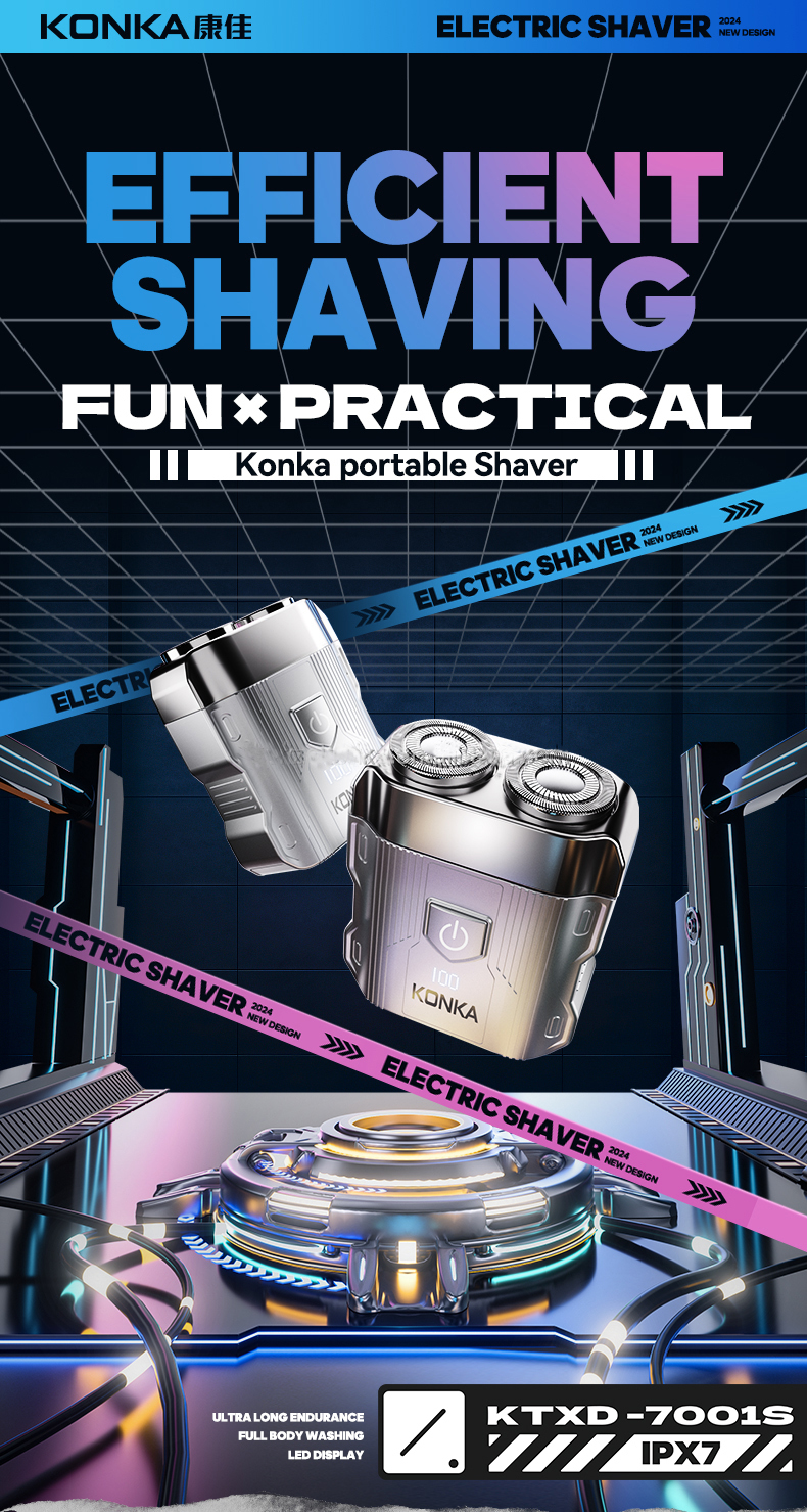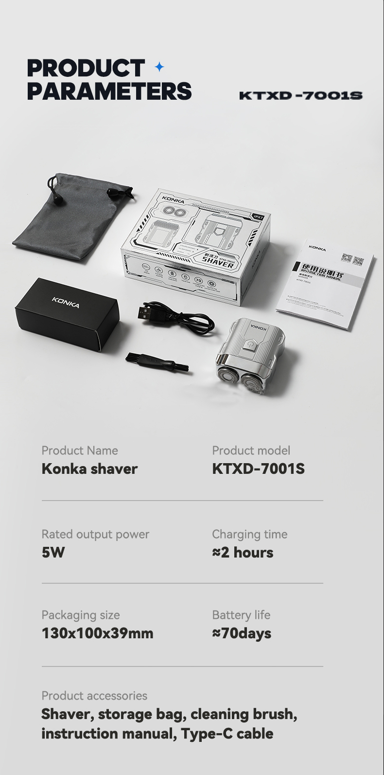 - Mecha-Style Design: The Konka Shaver boasts a cutting-edge mecha-style design that is compact and easily portable, perfect for the modern trendsetter.