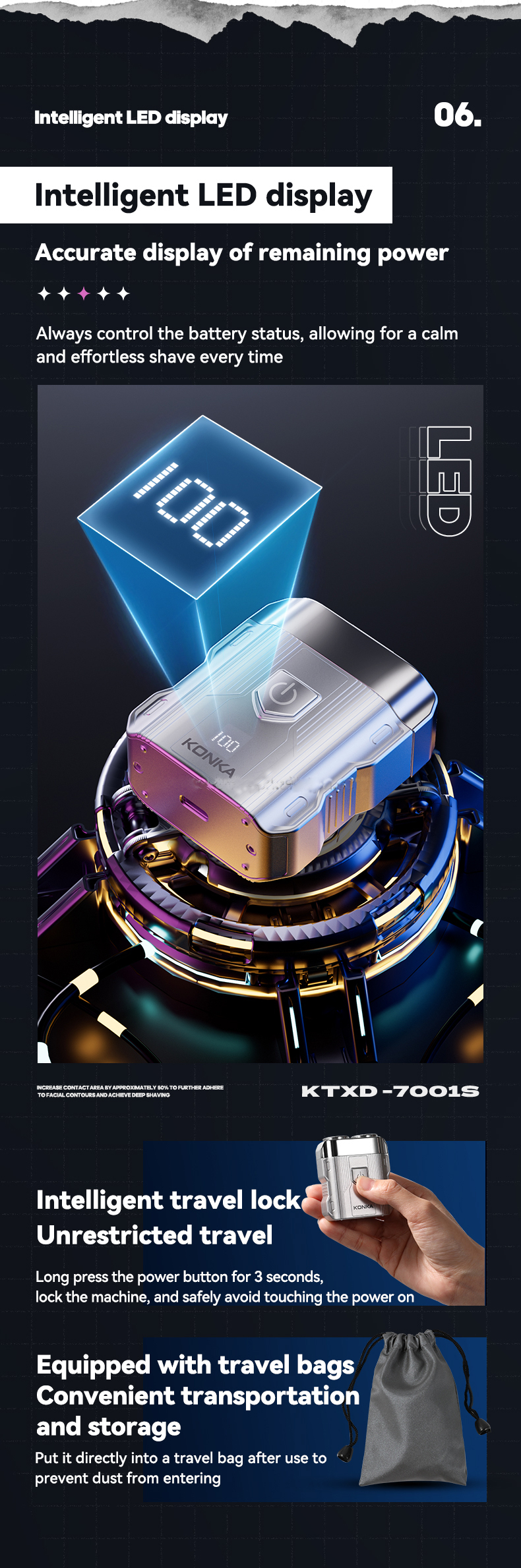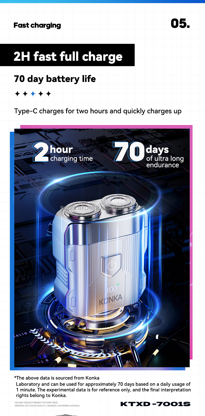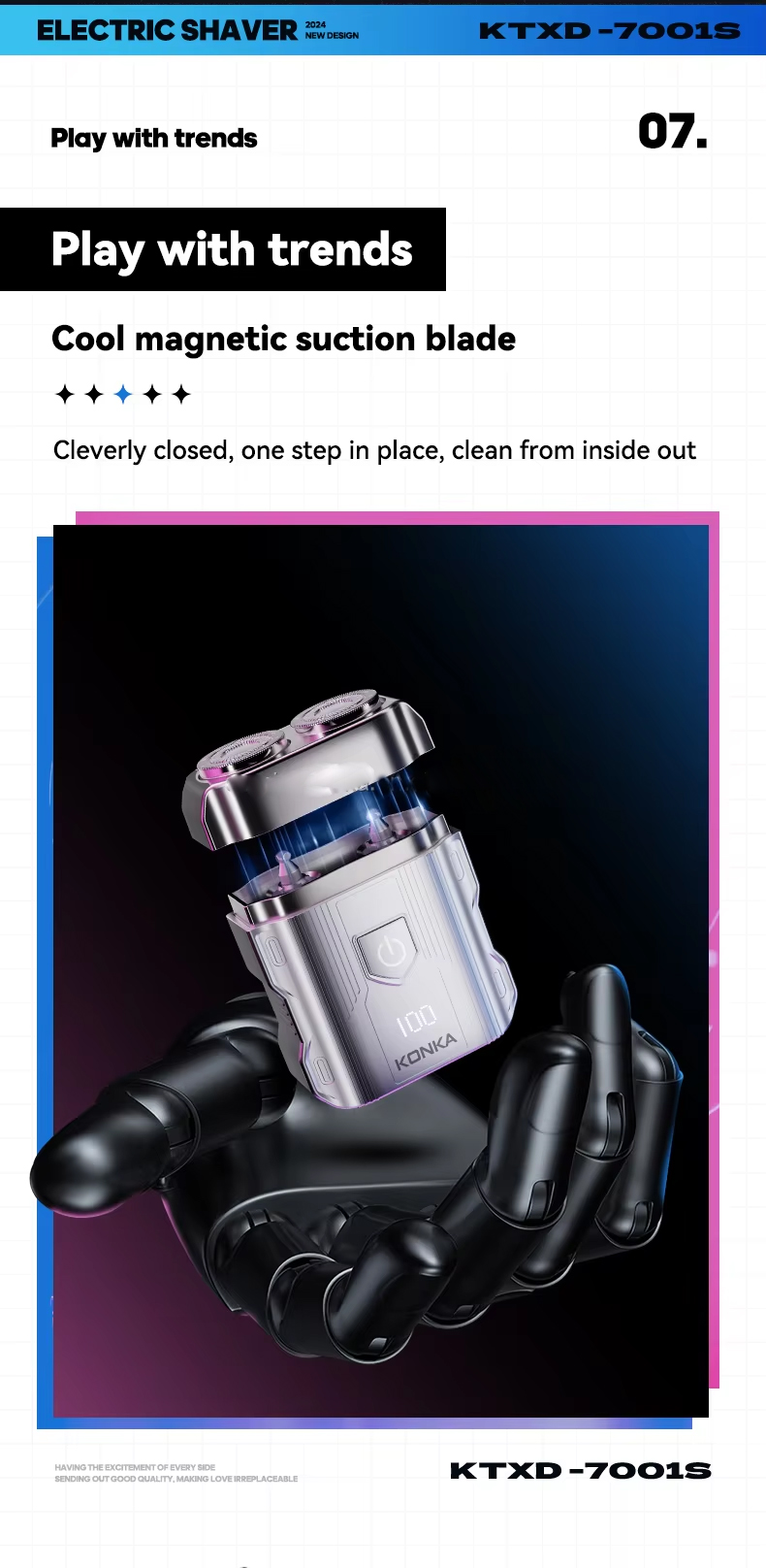 - Mecha-Style Design: The Konka Shaver boasts a cutting-edge mecha-style design that is compact and easily portable, perfect for the modern trendsetter.