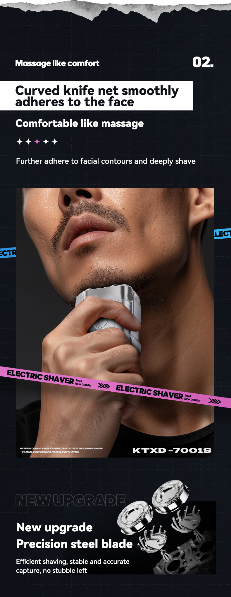 - Double-Headed Curve Blade Net: Experience a close and comfortable shave with its double-headed curve blade net, enabling a seamless fit and cleaning within 60 seconds, with no stubble left behind.