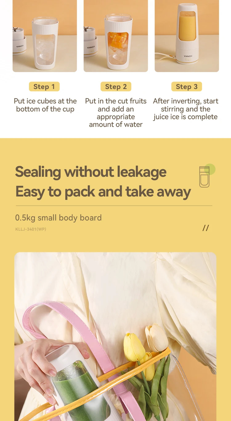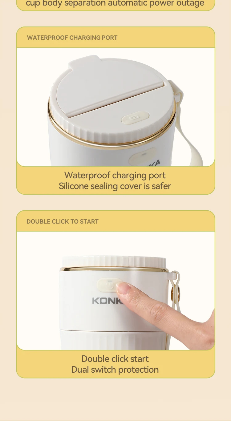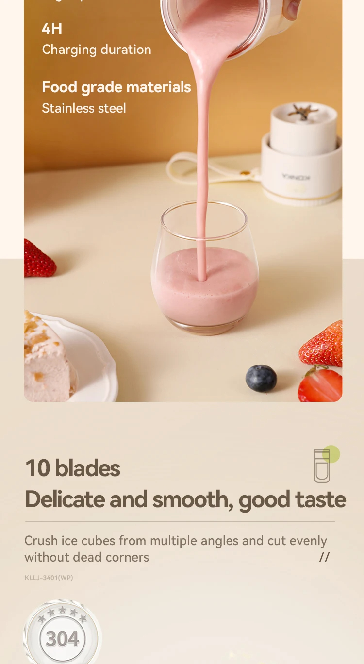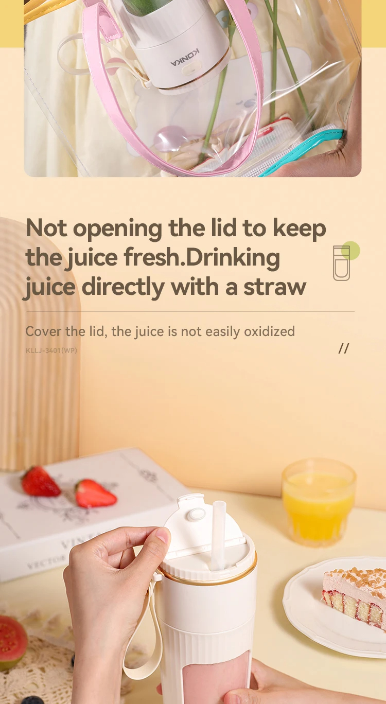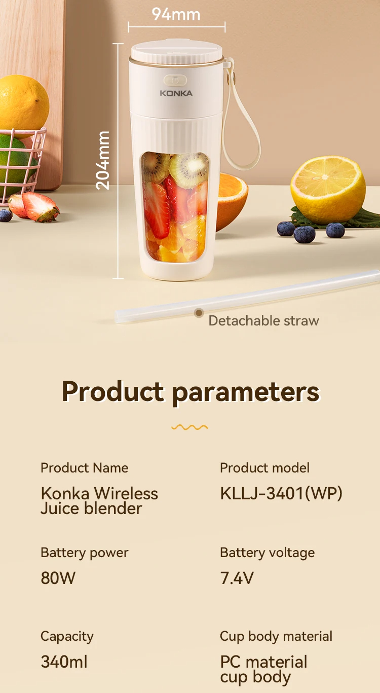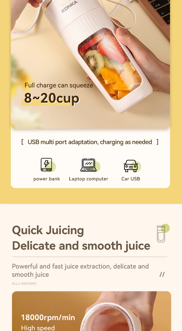 • Portable and Rechargeable: KONKA 340ml juice blender is portable and rechargeable, ideal for use on the go. It allows you to mix your favorite drinks anywhere.