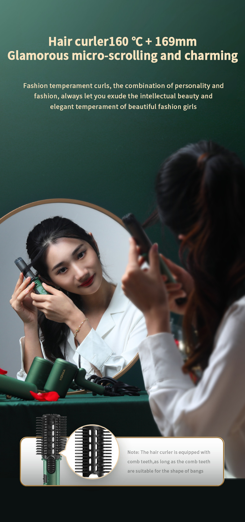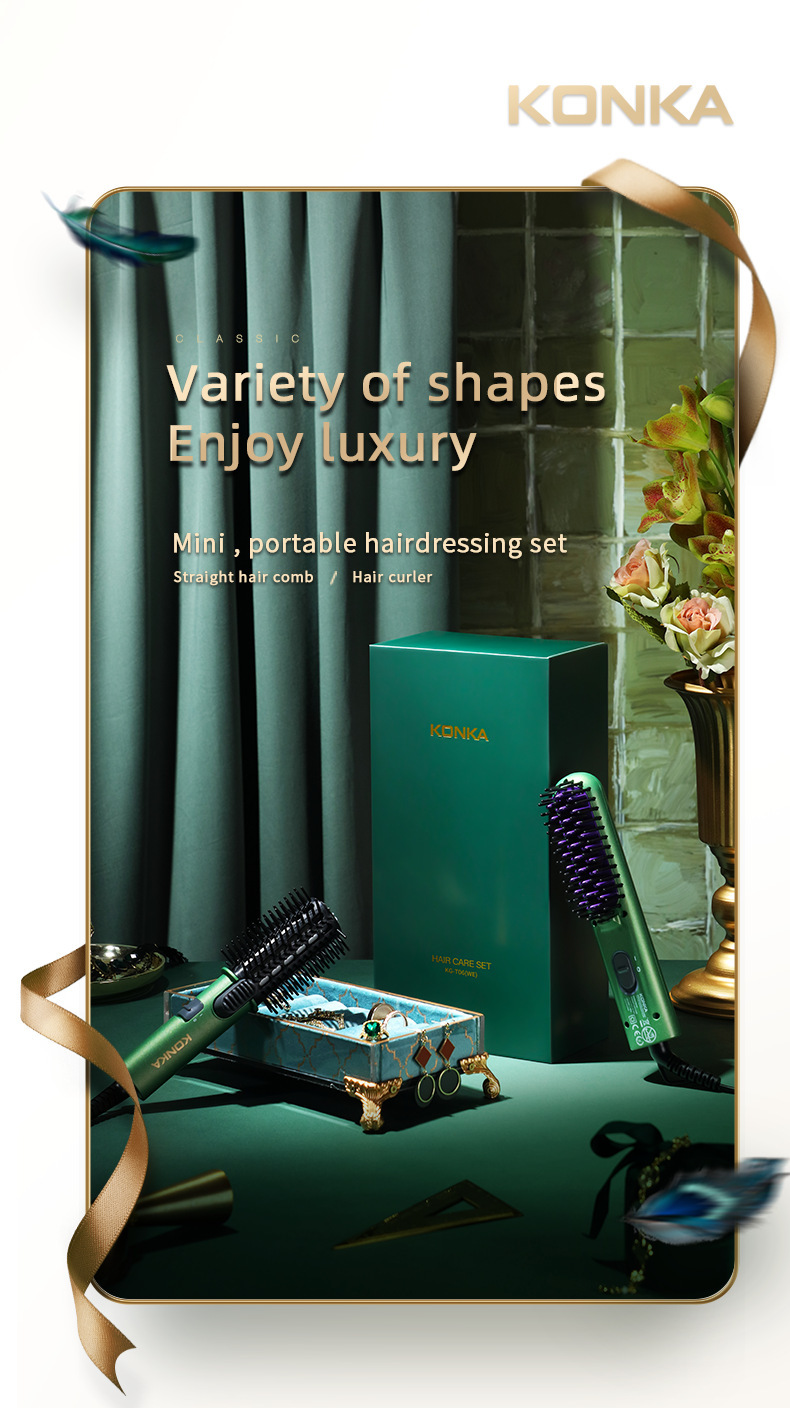 - Ceramic Heat Technology: Both the straightening brush and curling iron are equipped with a constant-temperature ceramic head, which heats quickly and evenly, minimizing hair damage while delivering smooth and shiny results.
