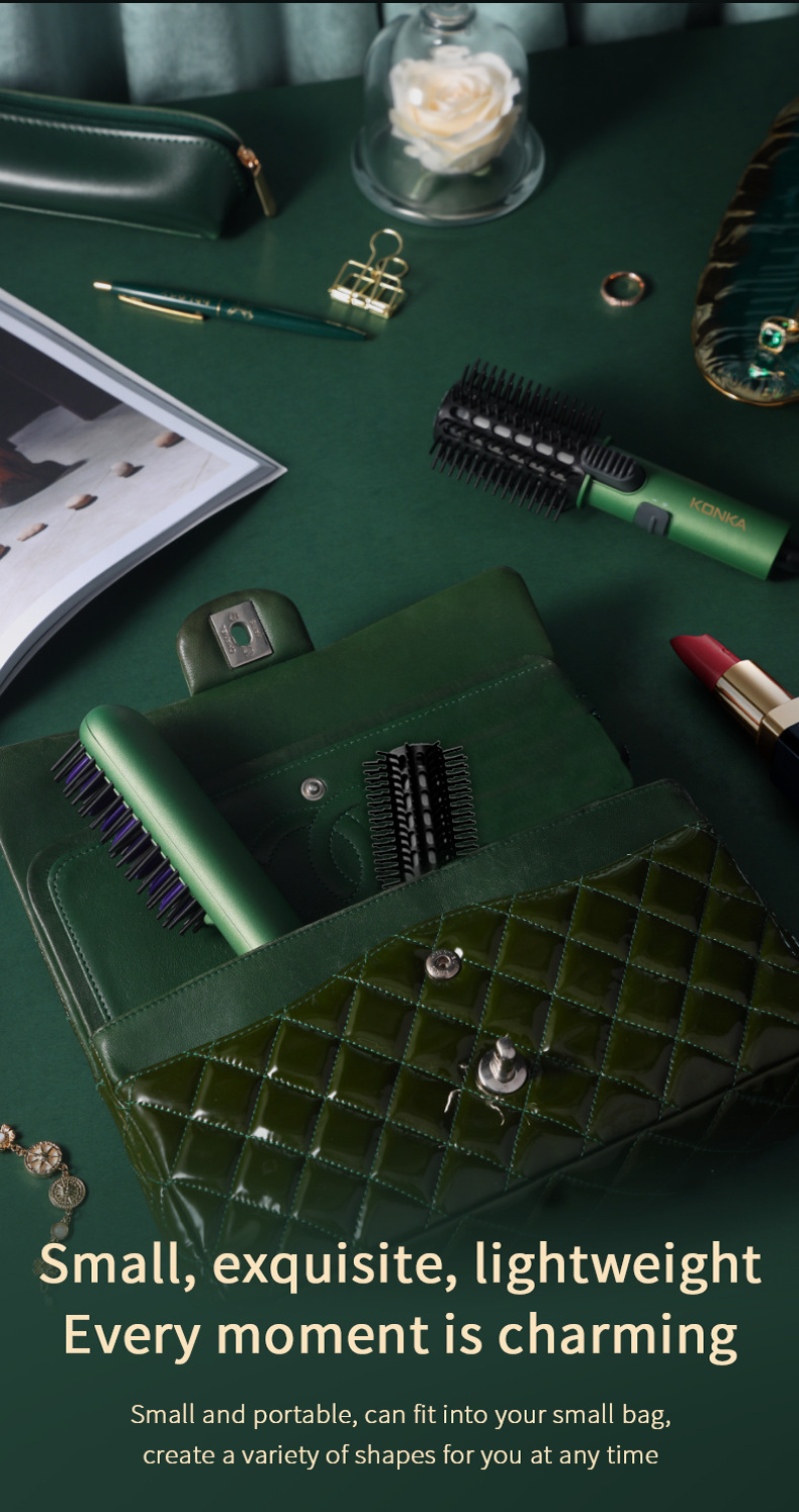 - Luxurious Design: Featuring an elegant silk-green, matte-finish exterior, this straightening brush and curling iron combo offers a luxurious look while revitalizing your hair with each use.