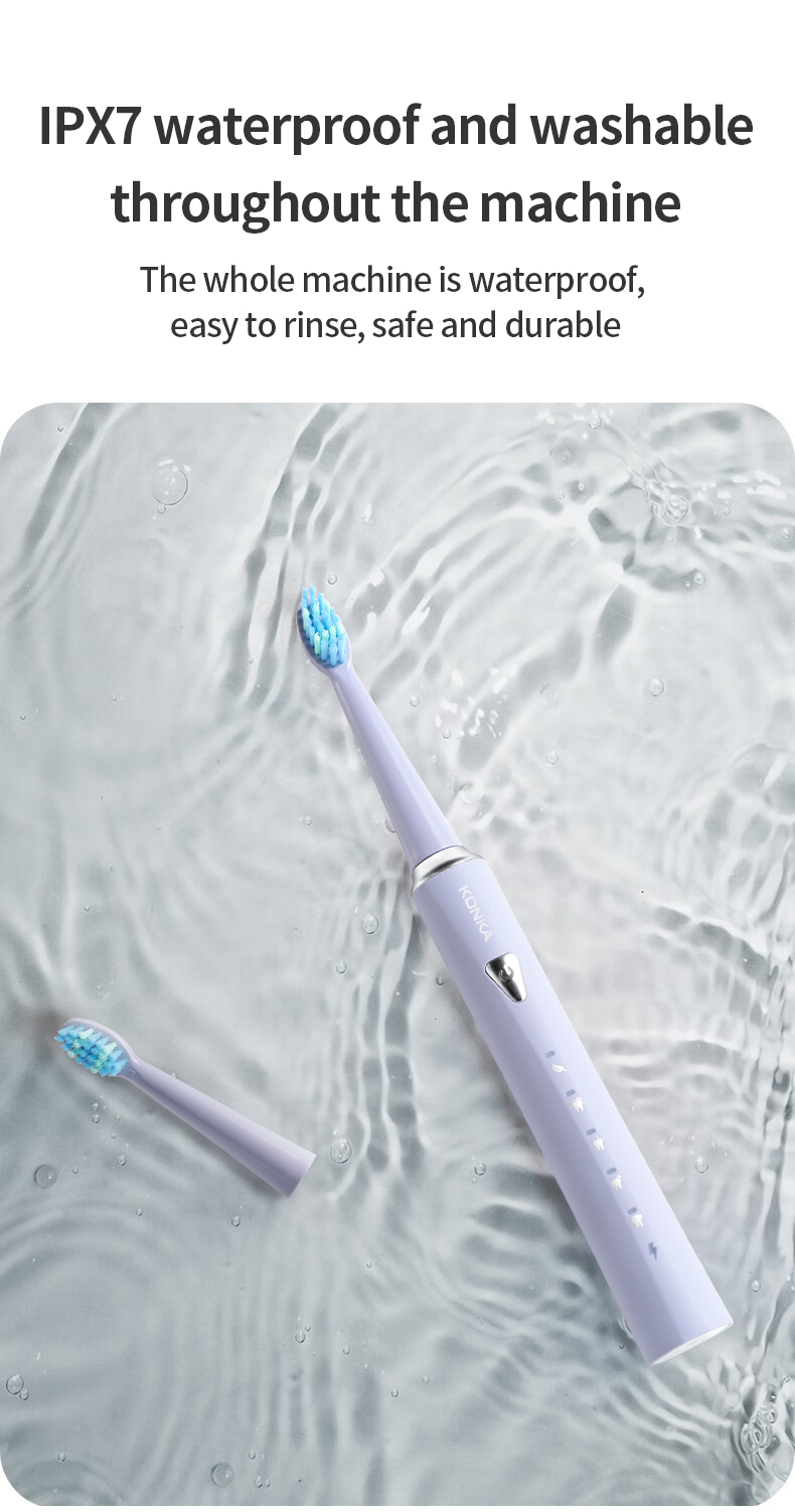 Designed with an IPX7 waterproof level, this toothbrush can be safely used in the bathroom or during showers, offering flexibility and peace of mind.