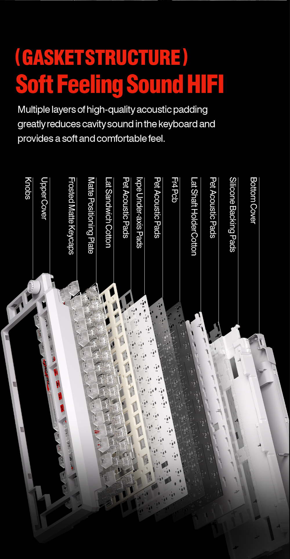 4. Gasket Structure: Multi-layer acoustic padding eliminates cavity sounds for improved keyboard sound quality.