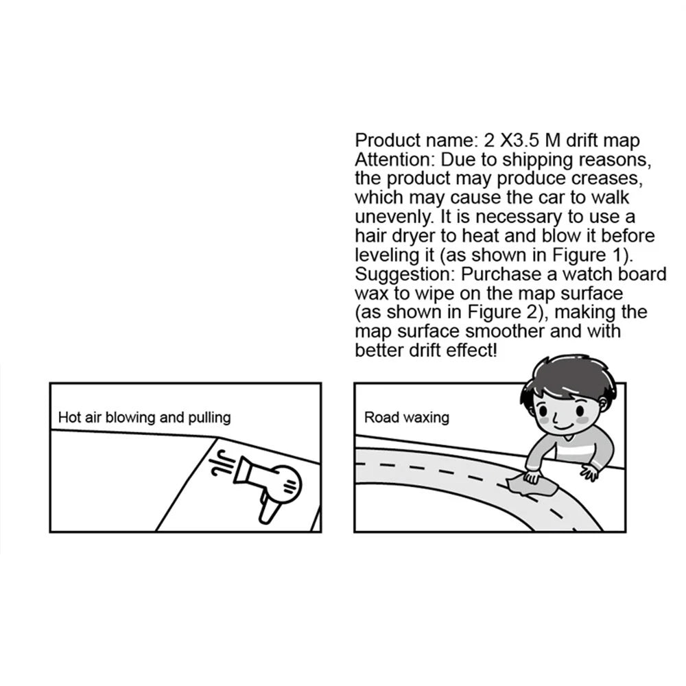 hair dryer to heat and blow it before leveling it (as shown in Figure 1).Suggestion: Purchase a watch board wax to wipe on the map surface(as shown in Figure 2), making the map surface smoother and withbetter drift effect!Description: