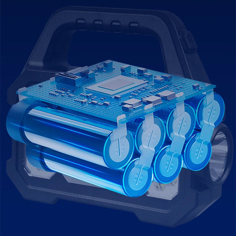 1.Three Light Source: Main light, side light and front flashlight are combined into this high-power floodlight, ensuring large-scale illumination. Fear of darkness is banished at the sight of high brightness.