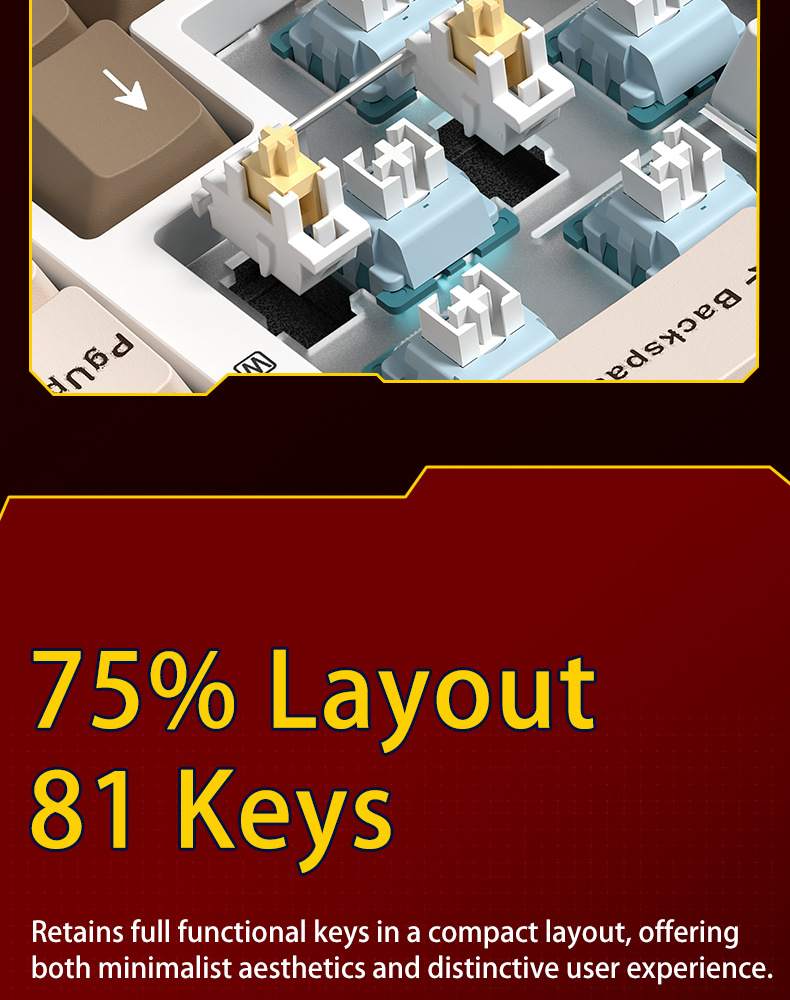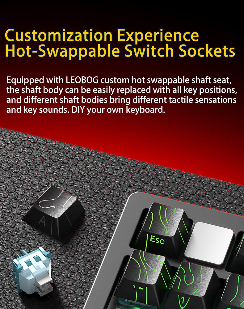 1. Hot-Swappable Design: Easily replace switches to customize tactile experiences and key sounds.