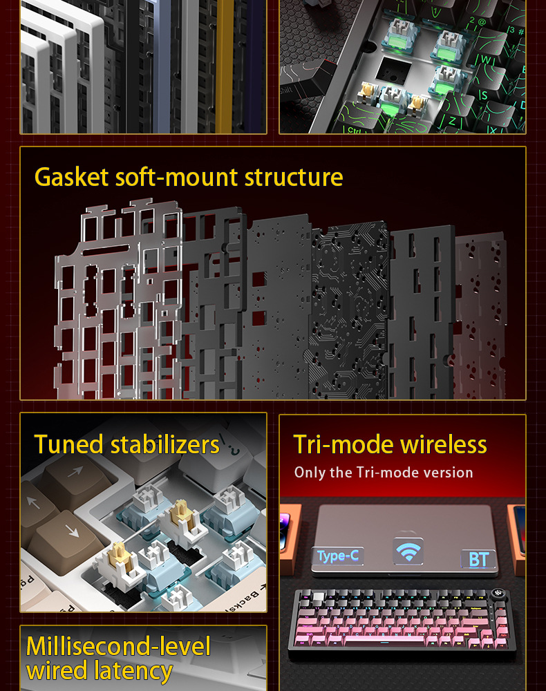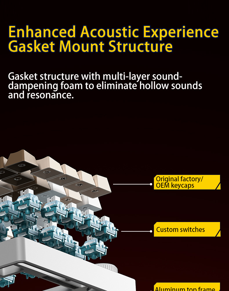 2. Enhanced Acoustic Experience: Gasket mount structure with multi-layer sound-dampening foam eliminates hollow sound and enhances typing precision.