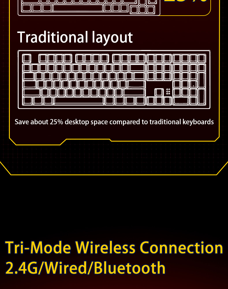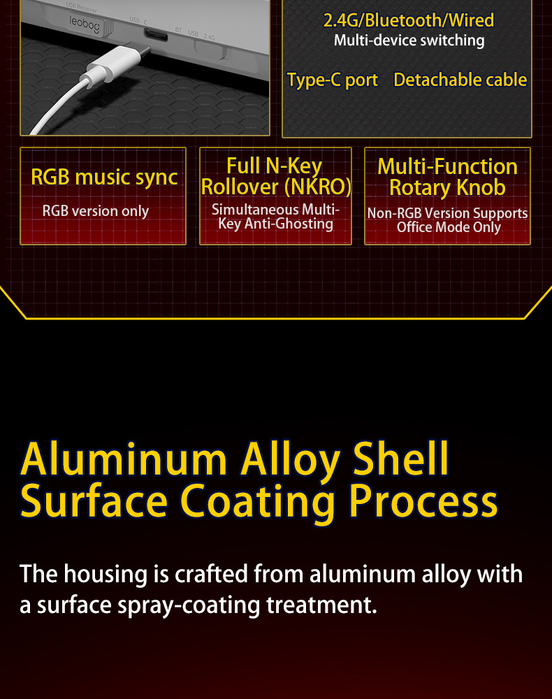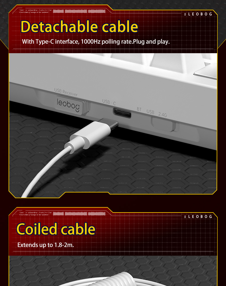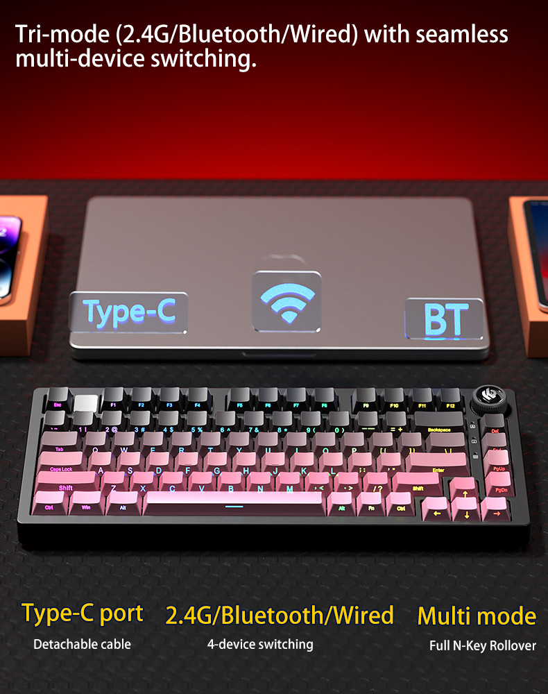 3. Tri-Mode Wireless Connectivity: Seamlessly switch between Type-C cable, 2.4G wireless, or bluetooth options for flexible usage.