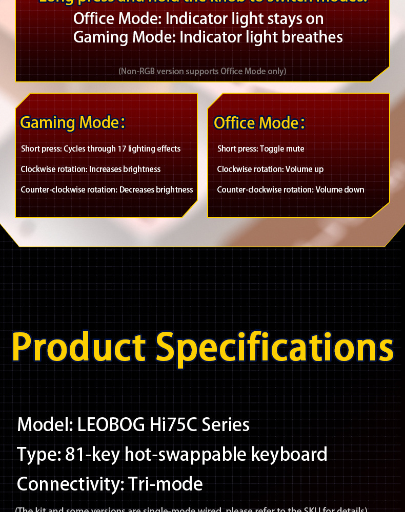 4. Transparent Rotary Knob: Multi-functional knob for switching between Gaming Mode and Office Mode, allowing lighting or volume control.