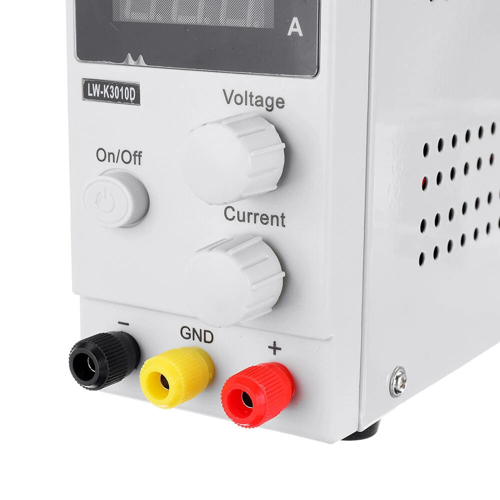 | Features: | Continuous working failure rate is low. With fan, can reduce heat for long service life. With warm, overload, current limiting protections. Constant Voltage (CV ) & Constant Current (CC ) Function. Suitable for school, laboratory, workshop and various occasions which need to use DC Power Supply. This DC power supply can provide electronic devices of direct voltage from 0 to 30V and current from 0 to 10A. Can be regulated power supply using also can be used for current, voltage regulator, steady flow can be automatic conversion. |