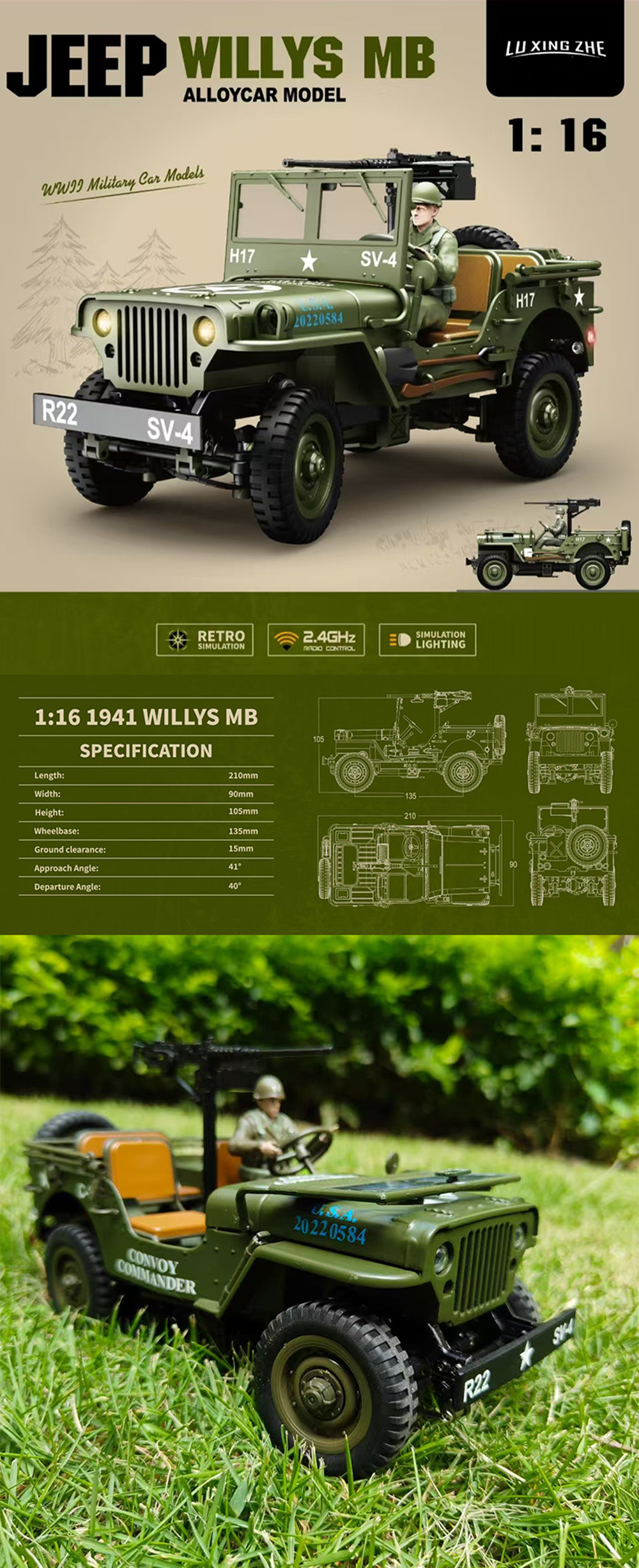 1.Alloy simulation body shell,openable hood,movable windshield