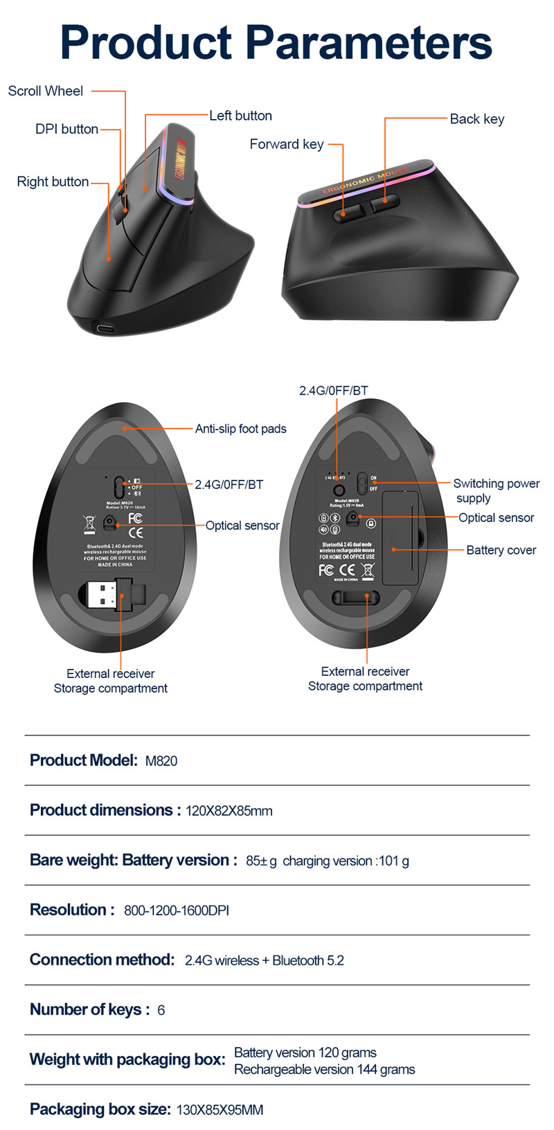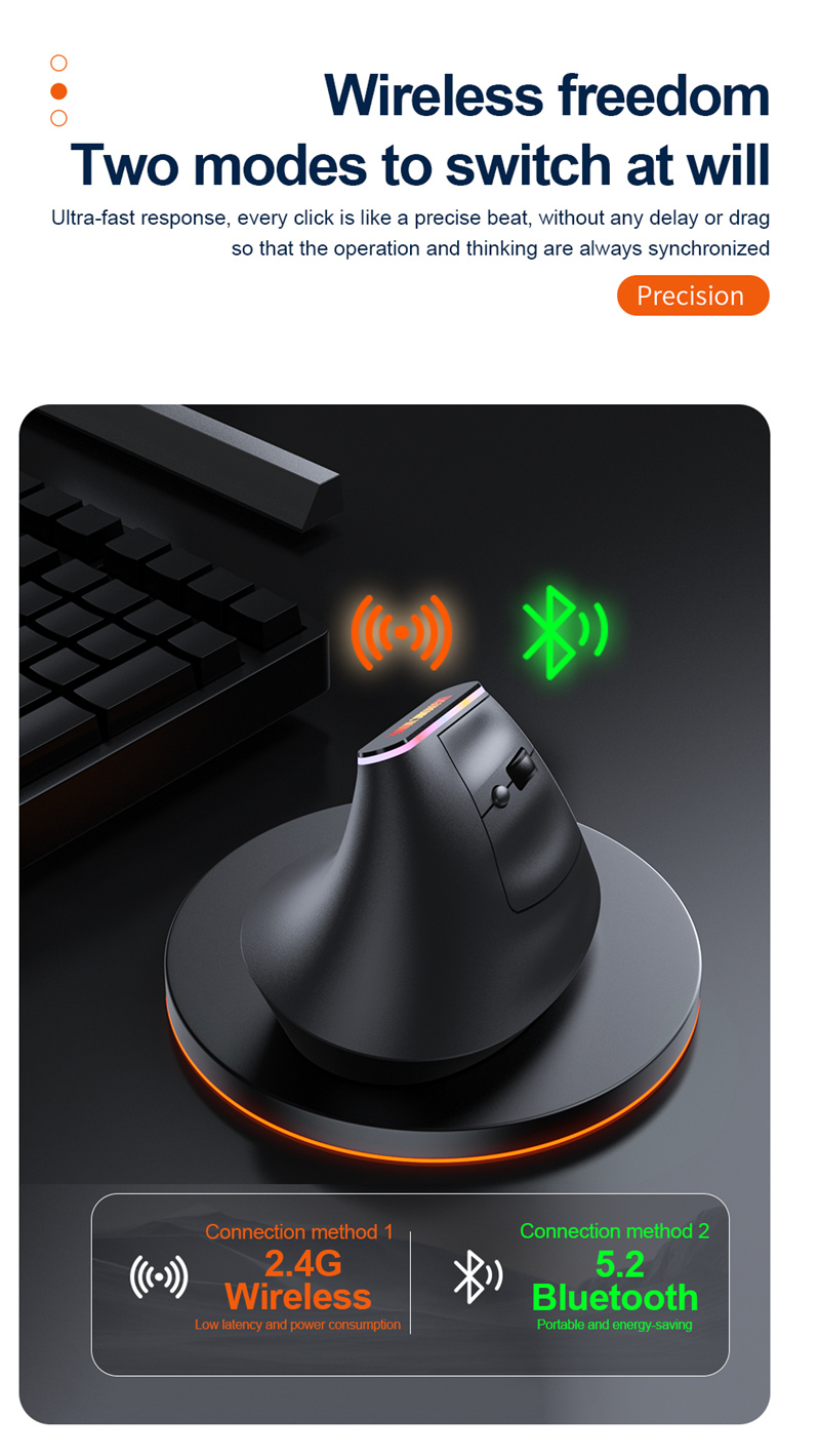 3. Dual Connectivity: Switch seamlessly between 2.4G wireless and bluetooth 5.2 for maximum convenience.