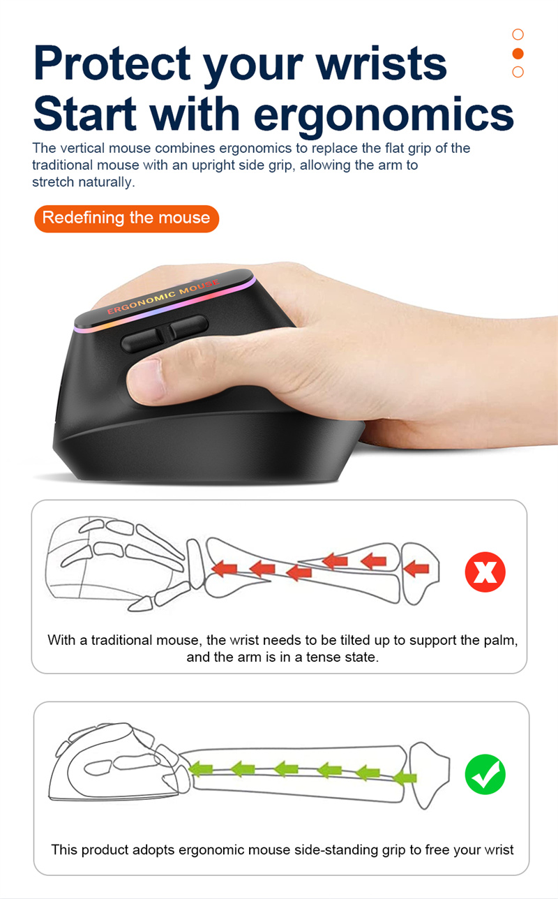 1. Ergonomic Design: Vertical side-grip style to promote a natural wrist posture and ease strain during prolonged use.