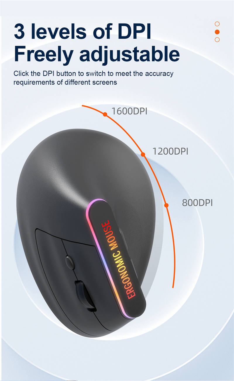 4. Adjustable DPI Levels: Three levels (800, 1200, 1600 DPI) for precise tracking and compatibility across multiple devices.