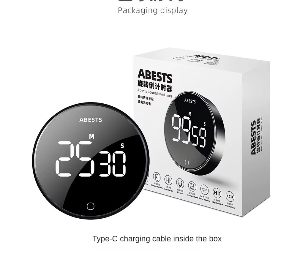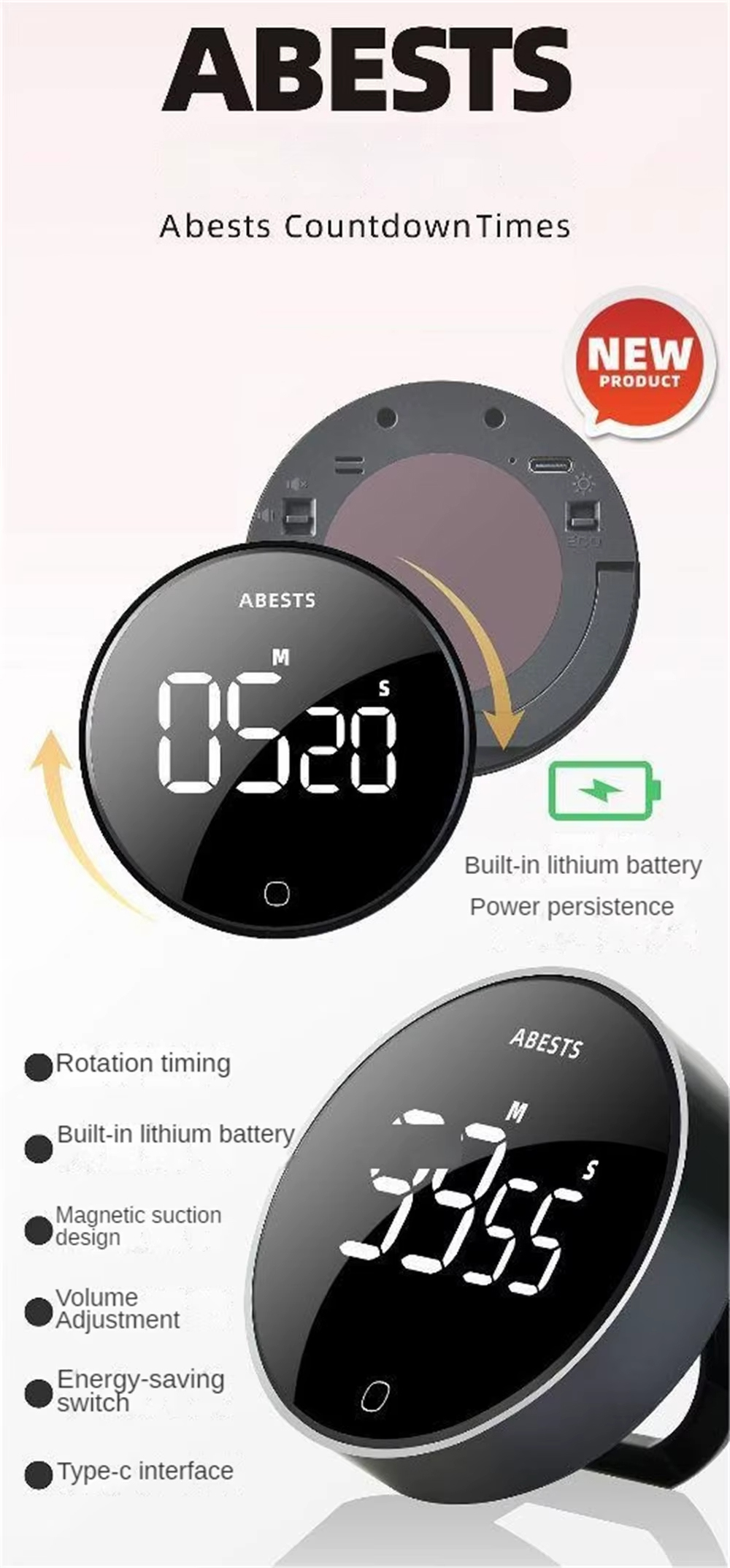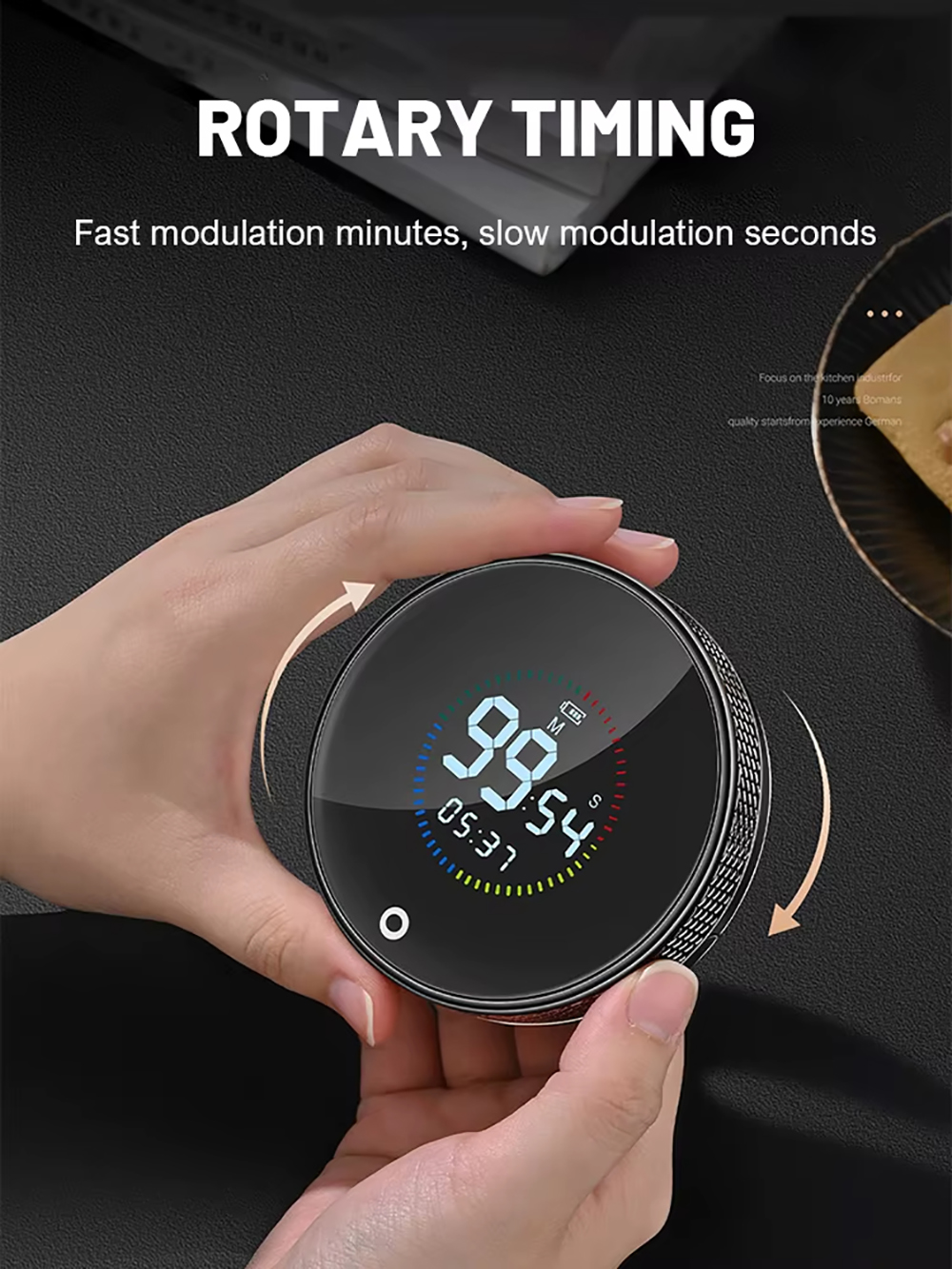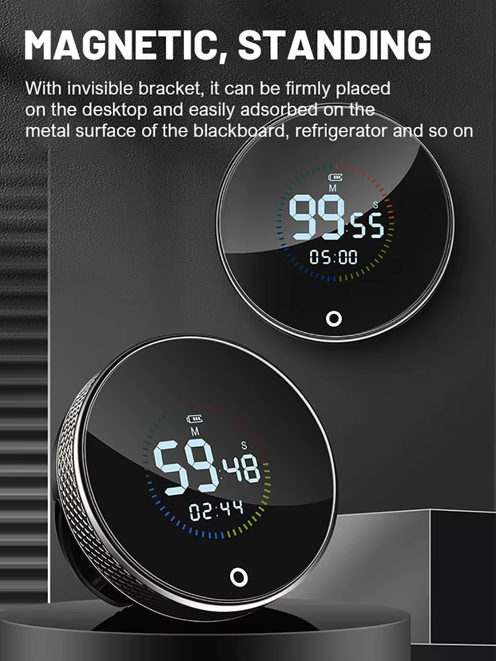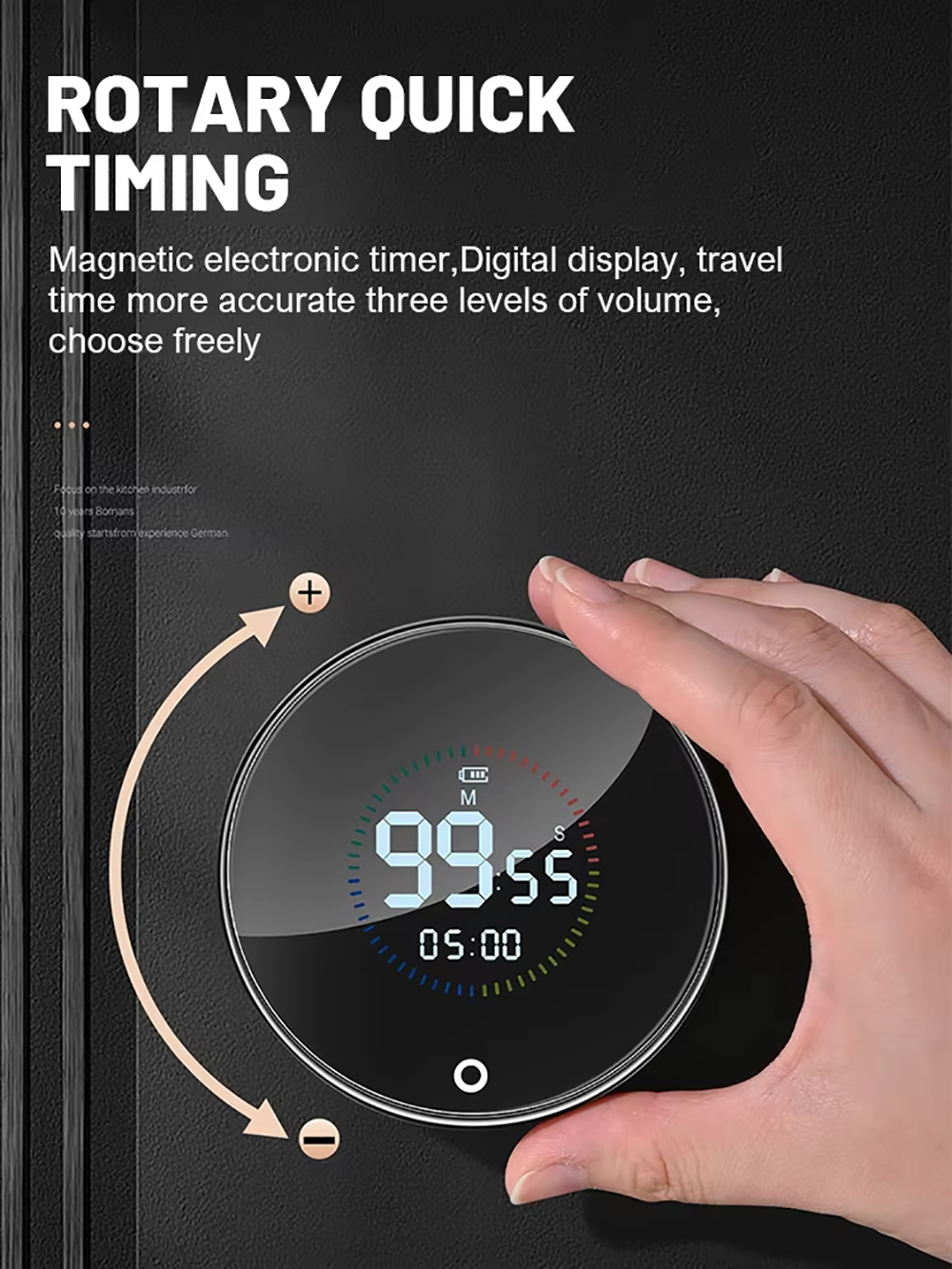 - Strong Magnetic Back: Equipped with powerful magnets on the back, the timer can be securely attached to refrigerators, ovens, blackboards, or any iron surfaces. This feature ensures convenient one-handed operation.