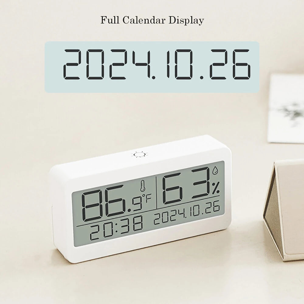 - Temperature and Humidity Display: This clock not only shows the time and date but also displays the current temperature and humidity. This multi-functional display keeps you informed of your environment’s conditions, aiding in maintaining a comfortable living space.