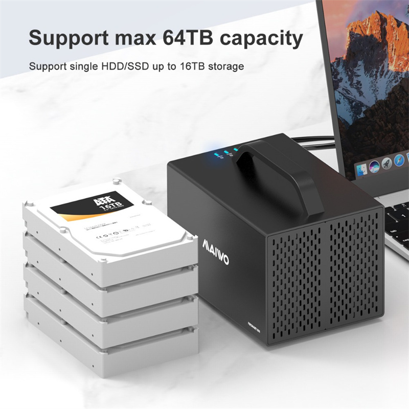 Maximum Capacity: Supports up to 64TB storage (16TB per HDD/SSD)