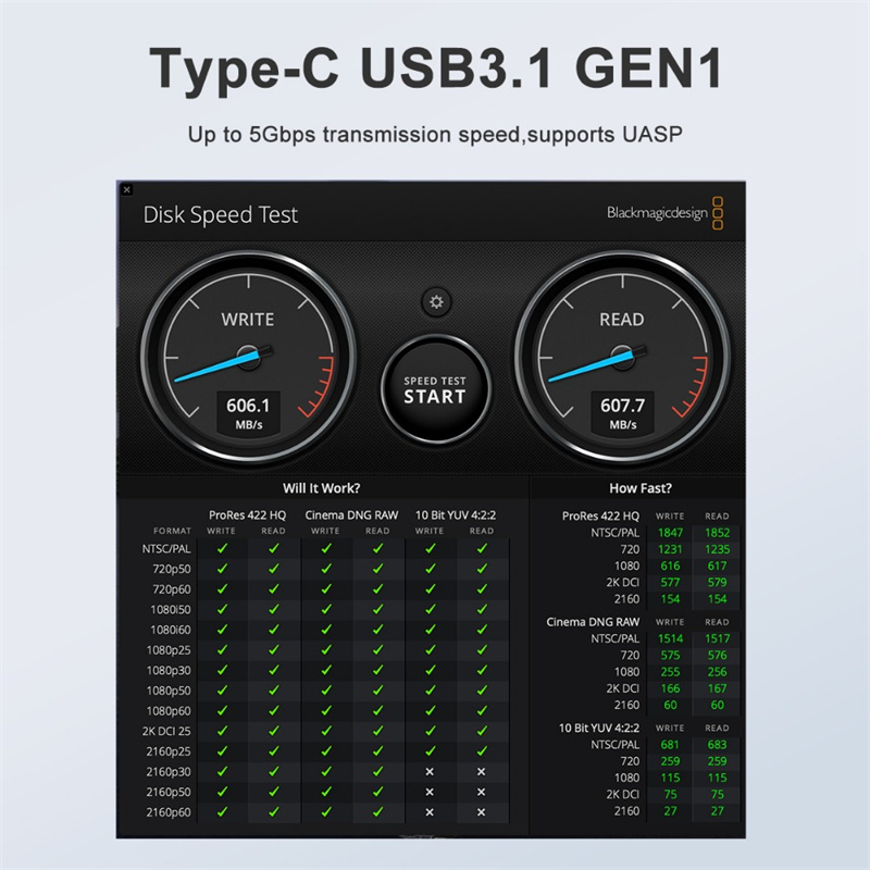 1. High-Speed Performance: Type-C USB3.1 GEN1 interface supports up to 5Gbps transmission speed, including UASP support for optimized data transport.