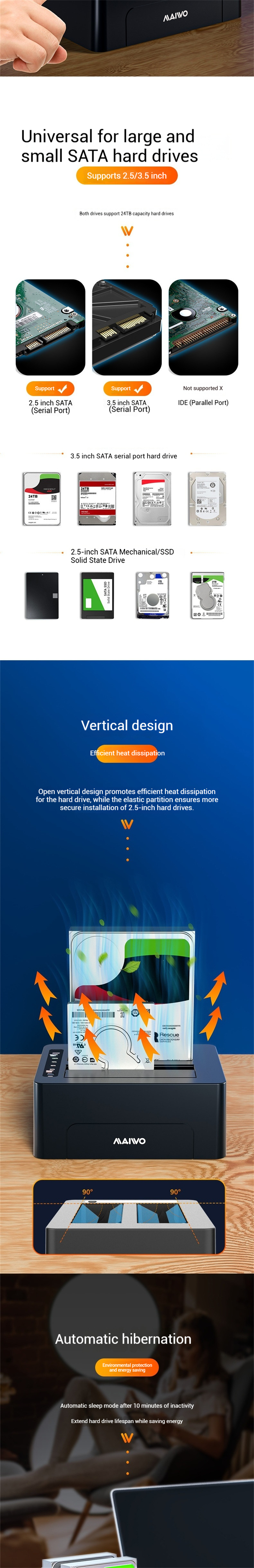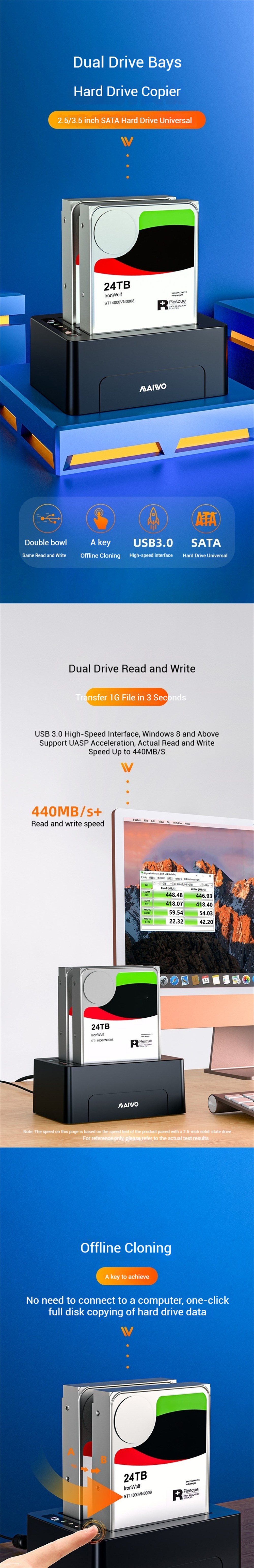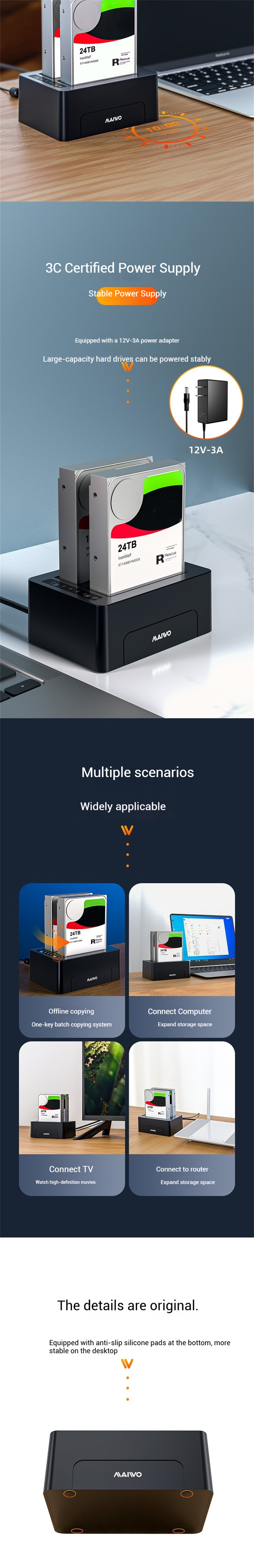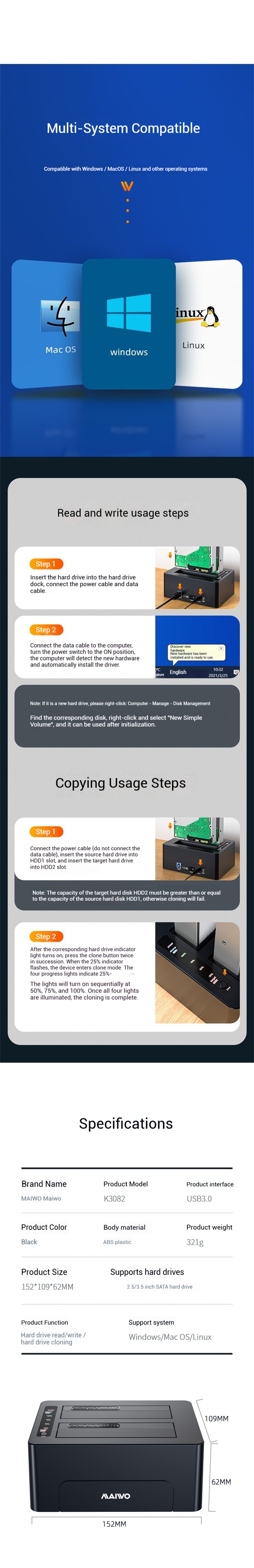 1. Dual-bay design supports simultaneous read and write, handling 2 HDDs effortlessly and boosting productivity.