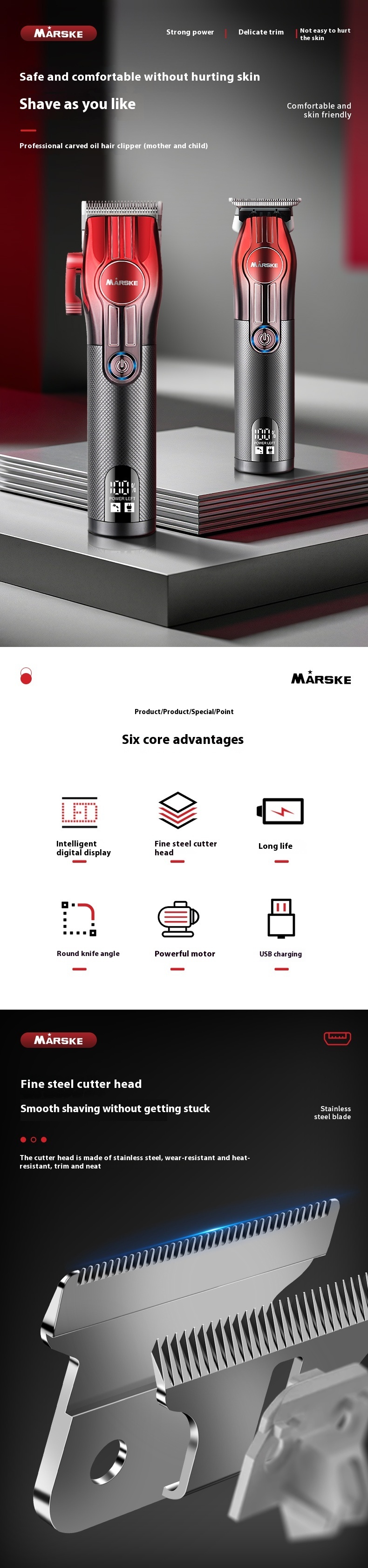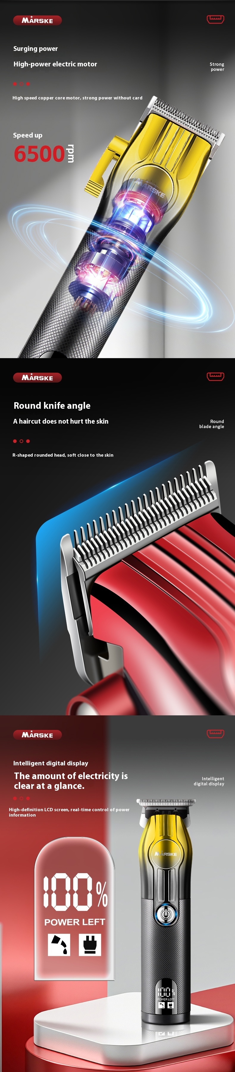 Equipped with a powerful motor reaching up to 6500 RPM, delivering efficient cutting performance without snagging hair. Ideal for professional and at-home styling.