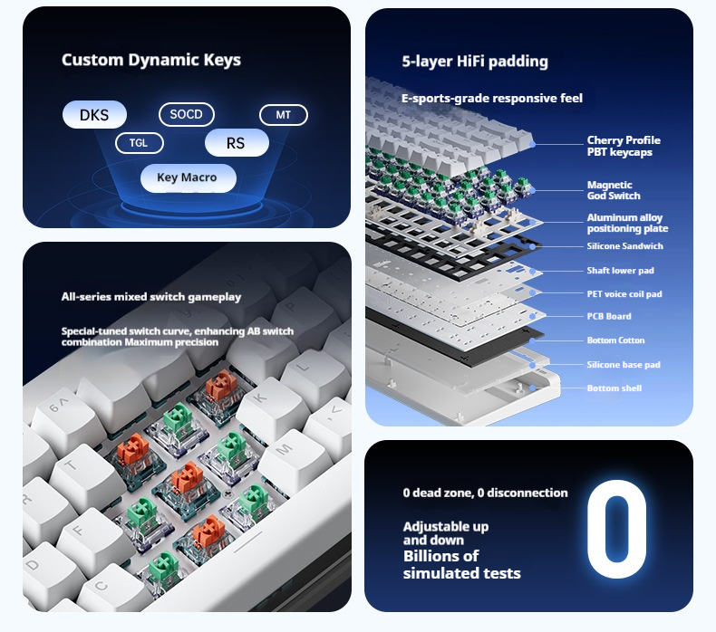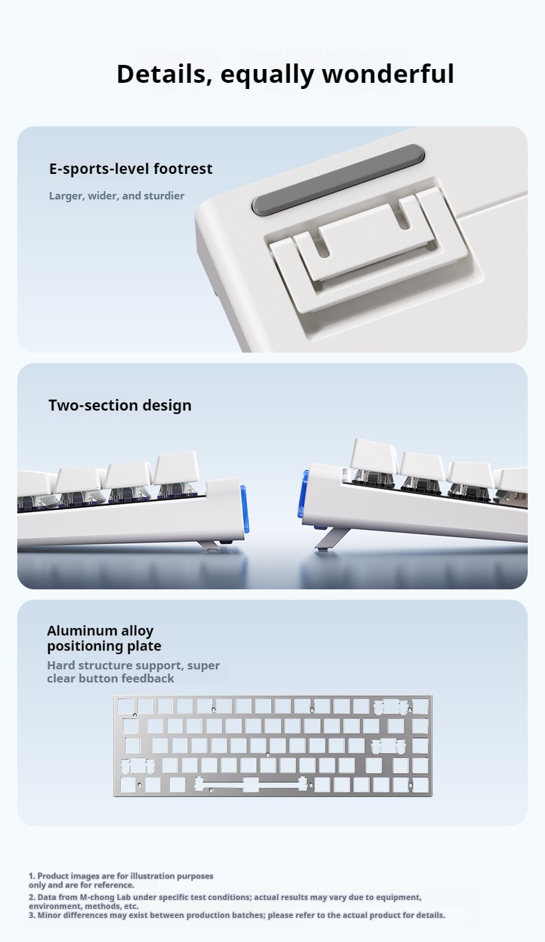 4. HiFi Sound Layers: Five-layer configuration including aluminum alloy plate and silicone padding for premium sound and typing feel.