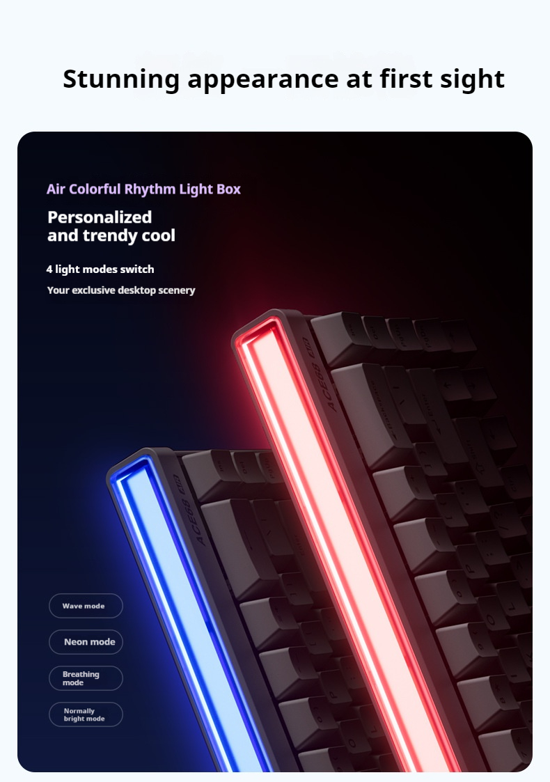 3. Customizable RGB Lighting: Air light-box with music rhythm effects (8 presets available).