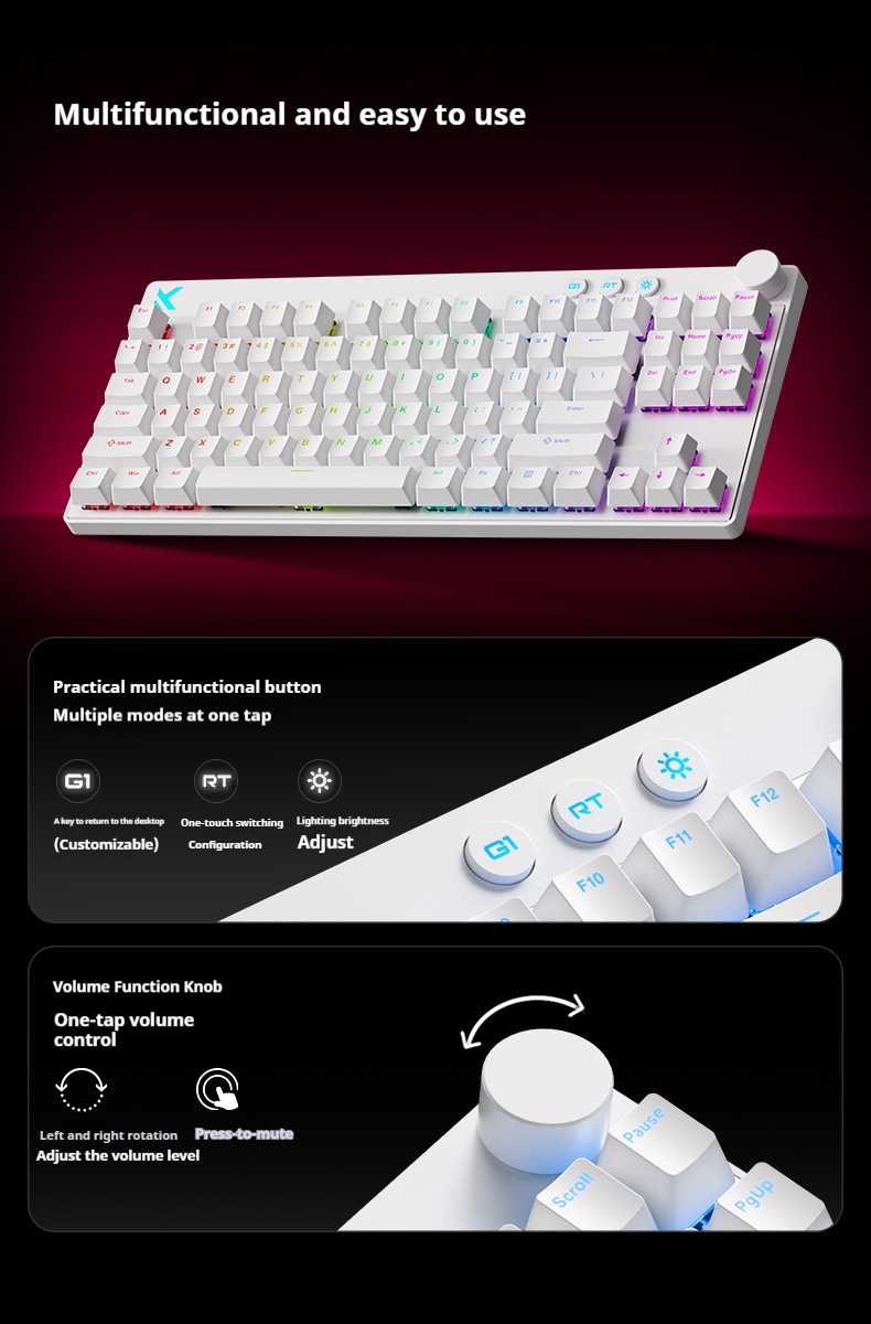 4. Dedicated Multimedia Controls: Features a multifunction knob for volume adjustments and one-touch mute.