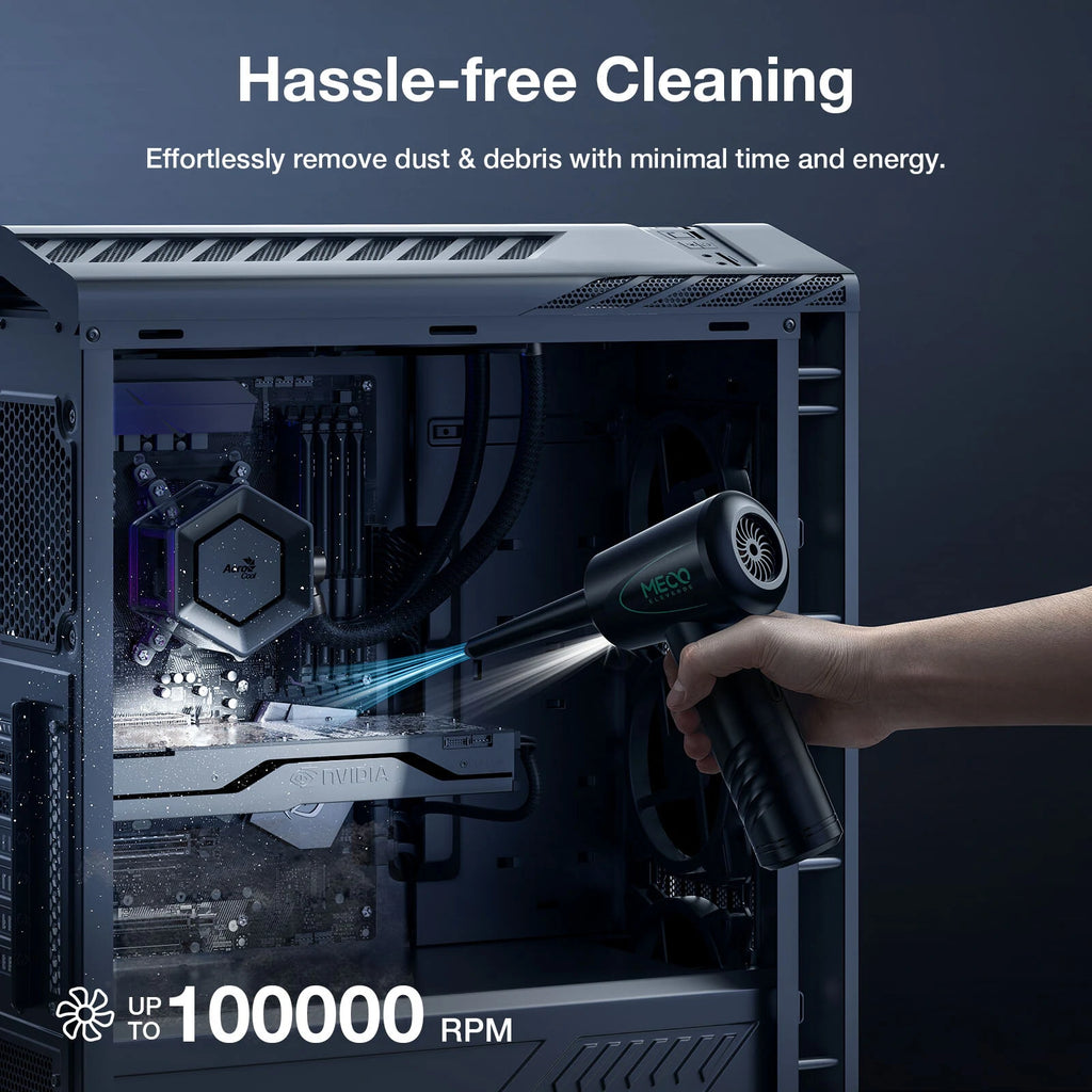 【Superior Blowing Power】MECO compressed air boasts a bell mouth air duct design, elevating its blowing prowess by 22% over standard alternatives. With a wind speed reaching up to 100,000 RPM, it produces an ultra-powerful airflow, optimized for deep cleaning missions.