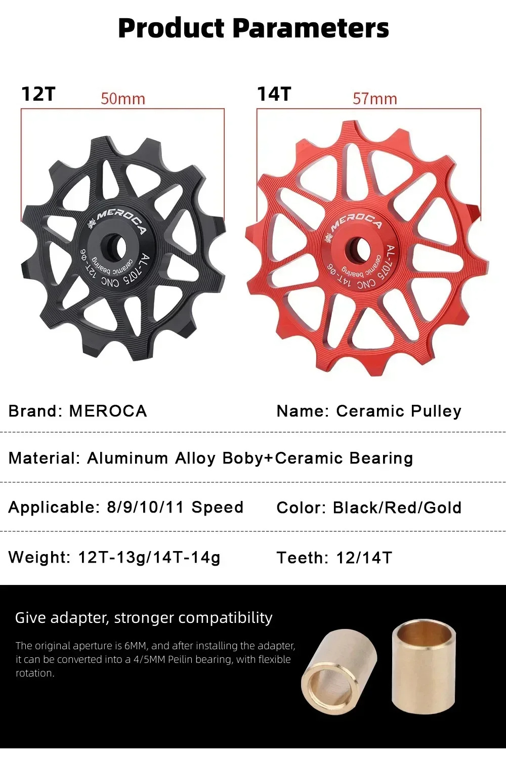 50mm(12T), 57mm(14T) |