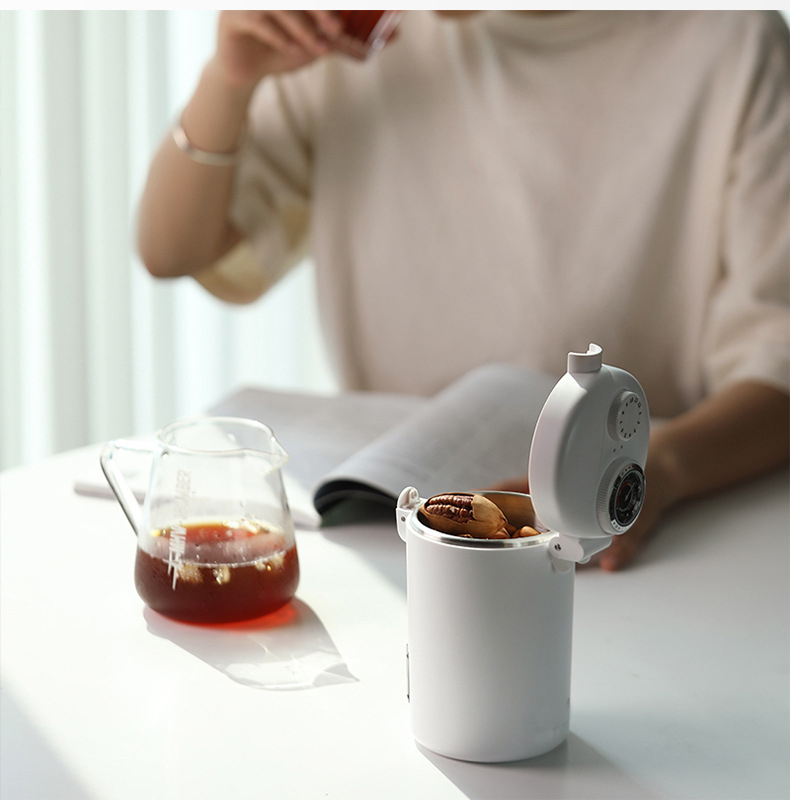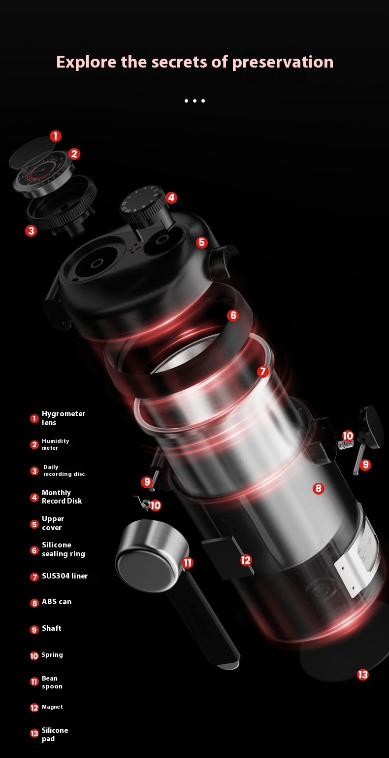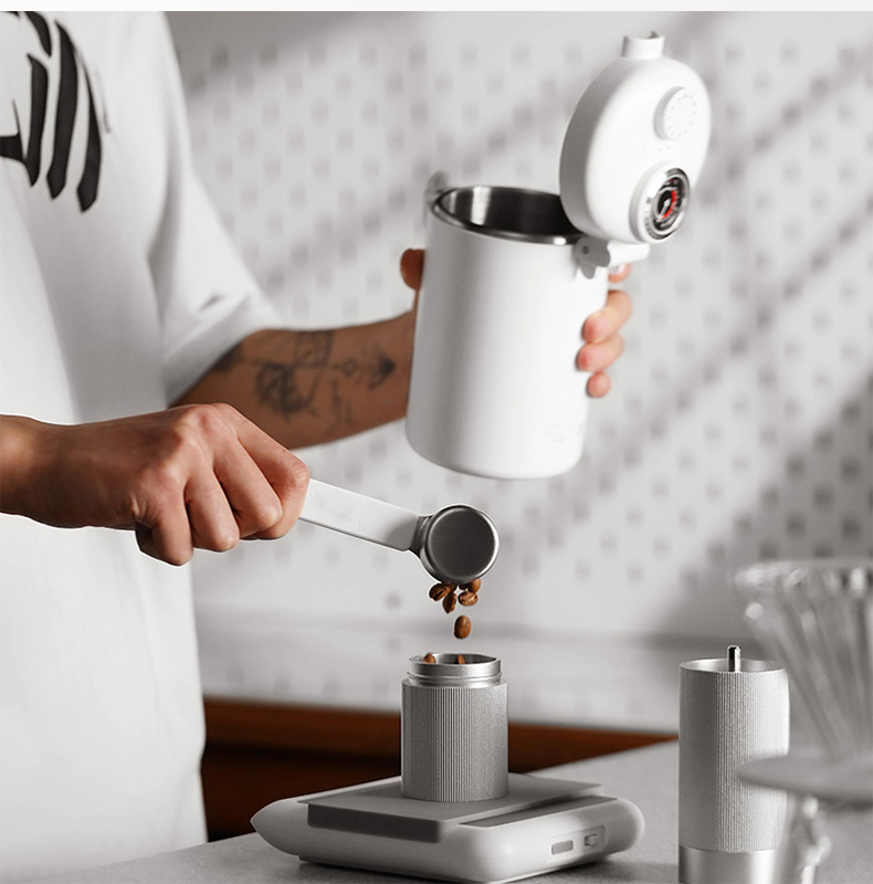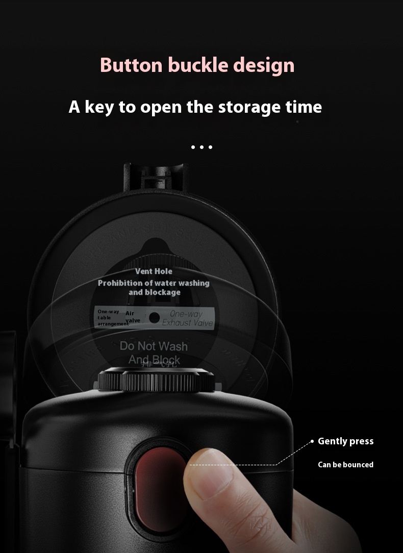Opening Featuring a robust double-layer design, this canister provides a stable storage environment for your coffee beans. The outer ABS shell paired with the SUS304 inner tank ensures maximum protection. Additionally, the one-touch opening mechanism offers easy access – just a gentle press to popopen, providing ultimate convenience.