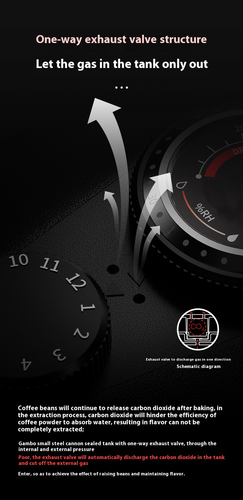 Our innovative one-way exhaust valve is designed to allow gases to escape the container without re-entering, effectively preserving the flavor of your coffee beans. It ensures any unwanted gases are expelled, maintaining a fresh environment inside the canister.