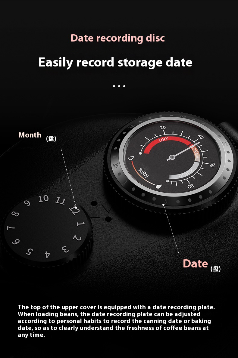 Keep an eye on the freshness of your coffee beans with the built-in date recording disk. This handy feature enables you to track when the beans were stored, helping you manage their shelf life and ensuring you always enjoy your coffee at its best.