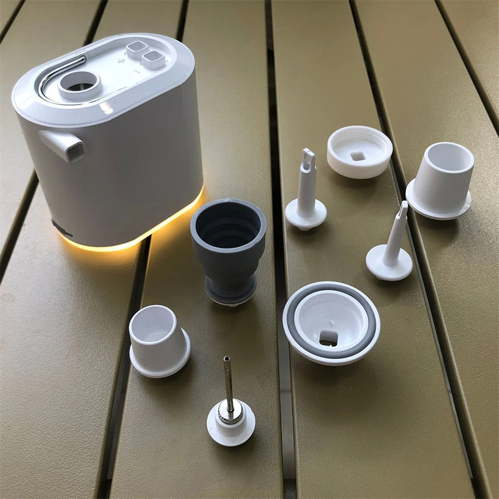 5.【Multi-Functional Camping Light】- It is not only a portable inflatable pump, but also a multi-functional camping light. The newly upgraded 4 mode lights are weak, moderate, strong and SOS flash distress lights.