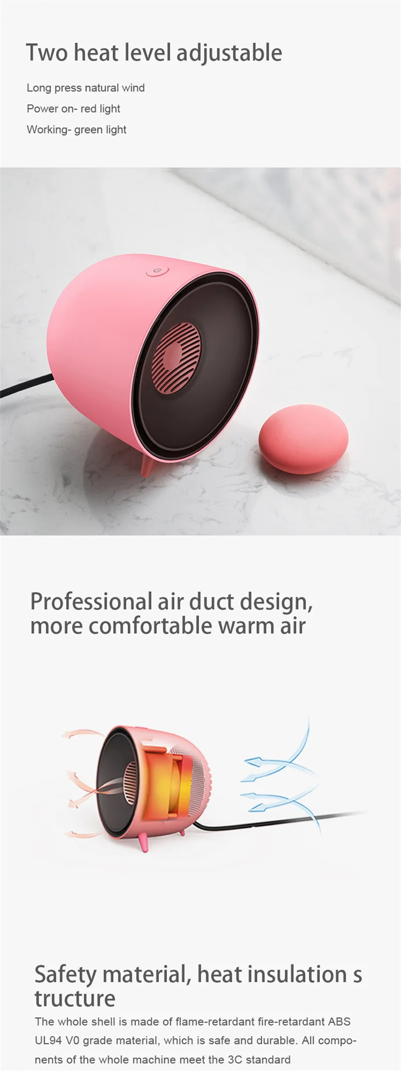 - Rapid Heating: The Desktop Fan Heater employs advanced PTC heating technology, ensuring that you feel the warmth within just 3 seconds.