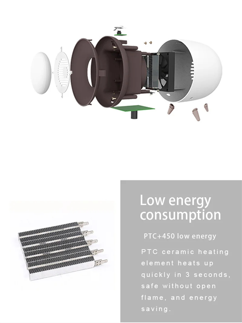 - Dual Wind Modes: Featuring two wind speed settings, this heater can switch between warm and natural wind, catering to varied preferences. A single press activates warm wind, while a long press changes to natural wind, ensuring flexibility according to the room's conditions.