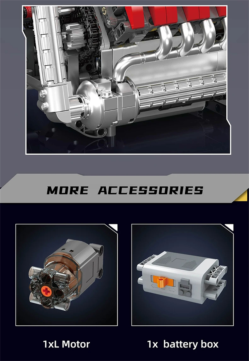 Item Name: The MB Car V8 Engine Model + Gearbox Brick Assembly Kit