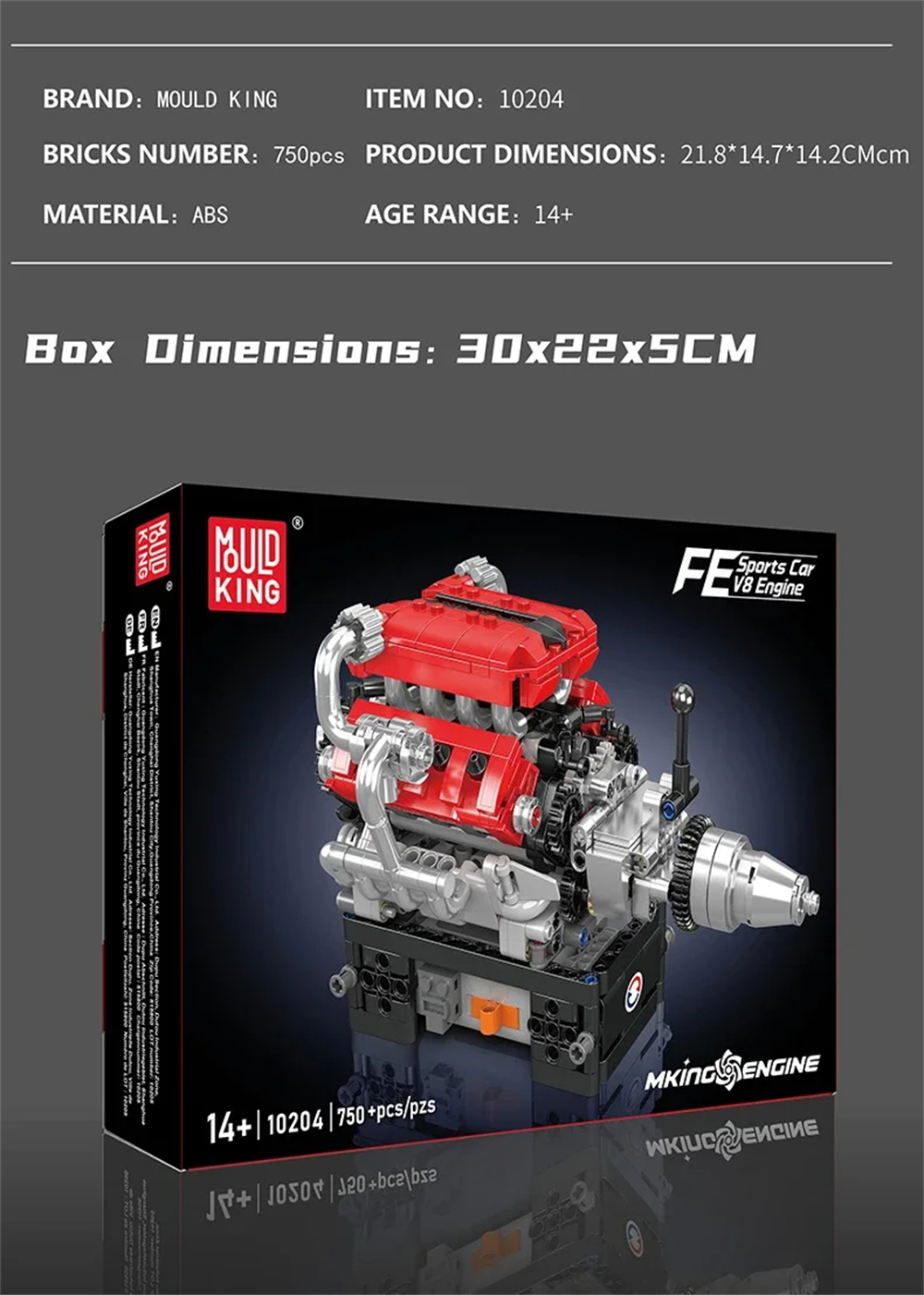 1 x Mould King 10204 FE Sports Car V8 Engine Building Block Brick Assembly Kit