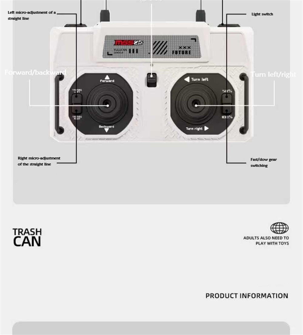 3.Basic function:move forward and backward,turn left and right,cover open and close,switch led lights,switch high and low speed and fine-tune left and right