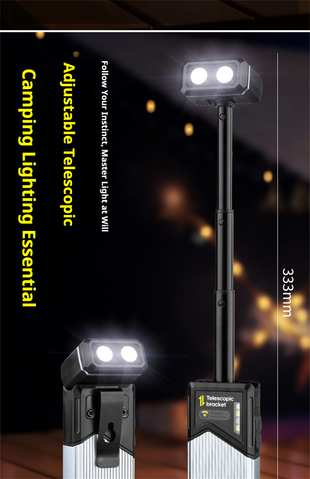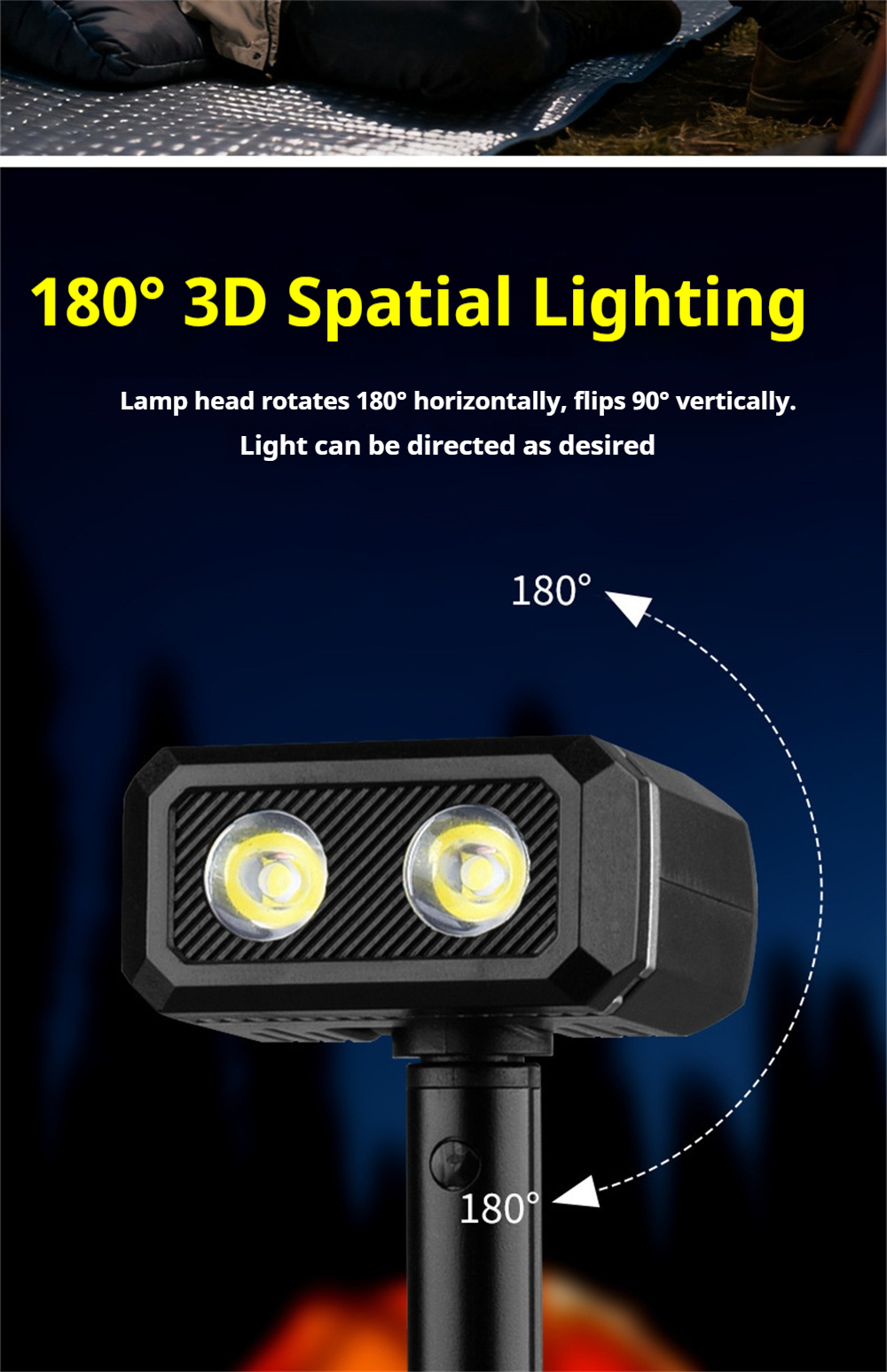 1. Versatile 180° rotation for optimal lighting direction.